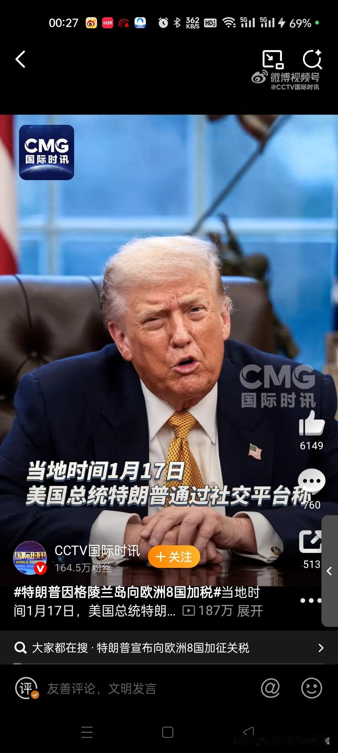特朗普格陵兰岛野心推高金价 2026年1月,特朗普因争夺格陵兰岛对欧洲八国加征关税的威胁,直接点燃市场避险情绪,推动国际金价飙升至每盎司4700美元的历史高位。 一、事件核心脉络:格陵兰岛争端触发关税威胁 特朗普的强硬表态 2026年1月17日,特朗普公开宣布对丹麦、挪威、瑞典、法国、德国、英国、荷兰、芬兰八个欧洲国家加征关税:2月1日起征收10%,6月1日升至25%,理由是这些国家“阻挠美国接管格陵兰岛”。他声称美国为购买该岛“努力了150多年”,并强调格陵兰岛对“金穹防御系统”的战略价值。@南宁晚报12 欧洲的反制与局势升级 八国联合声明谴责关税威胁“破坏跨大西洋关系”,德国外长明确表示美欧贸易协议“不可行”。@参考消息 欧盟计划启动“反胁迫工具”,考虑对价值930亿欧元的美国商品征收报复性关税。@看看新闻Kn...2 法国总统马克龙拟推动欧盟首次启用该机制,加剧贸易摩擦预期。2 二、市场反应:避险需求推高金价 贵金属价格创历史纪录 1月19日,现货黄金突破每盎司4690美元,白银涨至94.12美元/盎司,均刷新历史峰值。@广元日报看广...217 1月20日,特朗普追加对法国葡萄酒200%关税后,金价再度拉升至4700美元上方。@证券时报e公...14 全球资产波动连锁反应 股市普跌:欧洲三大股指(英国富时100、法国CAC40、德国DAX)全面下挫,美股期货同步走低。@中国经济网15 货币与商品异动:美元对欧元、英镑、日元贬值,铜价因供应紧张和避险传导意外上涨。1018 三、深层影响与市场预判 长期避险逻辑强化 盛宝金融首席策略师查纳纳指出,即使关税短期缓解,“贸易政治化”“供应链割裂”等结构性风险将持续抬升黄金配置需求。2 专家警示短期超涨风险 中国(香港)金融衍生品投资研究院院长王红英认为,当前4600美元/盎司的金价已超涨(2026年价值中枢预估5000美元),建议持仓者高位减仓,未入场者勿追高。13 东吴证券芦哲补充:若美联储因通胀压力放缓降息,金价可能面临震荡;全球央行购金节奏短期或放缓,抑制上涨动能。@21世纪经济...21世纪经济报道 四、事件的延伸背景 美国“购岛”方案细节曝光 白宫曾讨论向格陵兰5.7万居民发放人均1万至10万美元现金(总额最高60亿美元),诱使其脱离丹麦加入美国,但遭丹格双方坚决拒绝。@环球时报89 地缘冲突叠加效应 格陵兰争端与同期美国对伊朗、委内瑞拉的施压形成共振,进一步放大避险情绪。2 风险提示:金价波动受多重因素影响,除地缘政治外,美联储政策、通胀数据等变量或导致短期回调,需谨慎评估投资风险。@中国经营报419