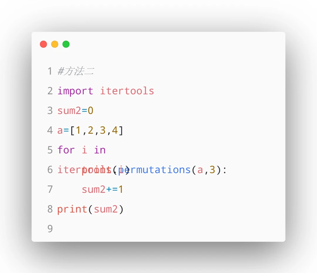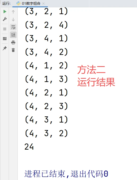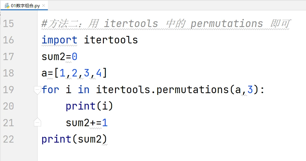 题目: 有四个数字:1、2、3、4,能组成多少个互不相同且无重复数字的三位数?各是多少? 方法一:遍历全部可能,把有重复的剃掉。 方法二:用 itertools 中的 permutations 即可 ~