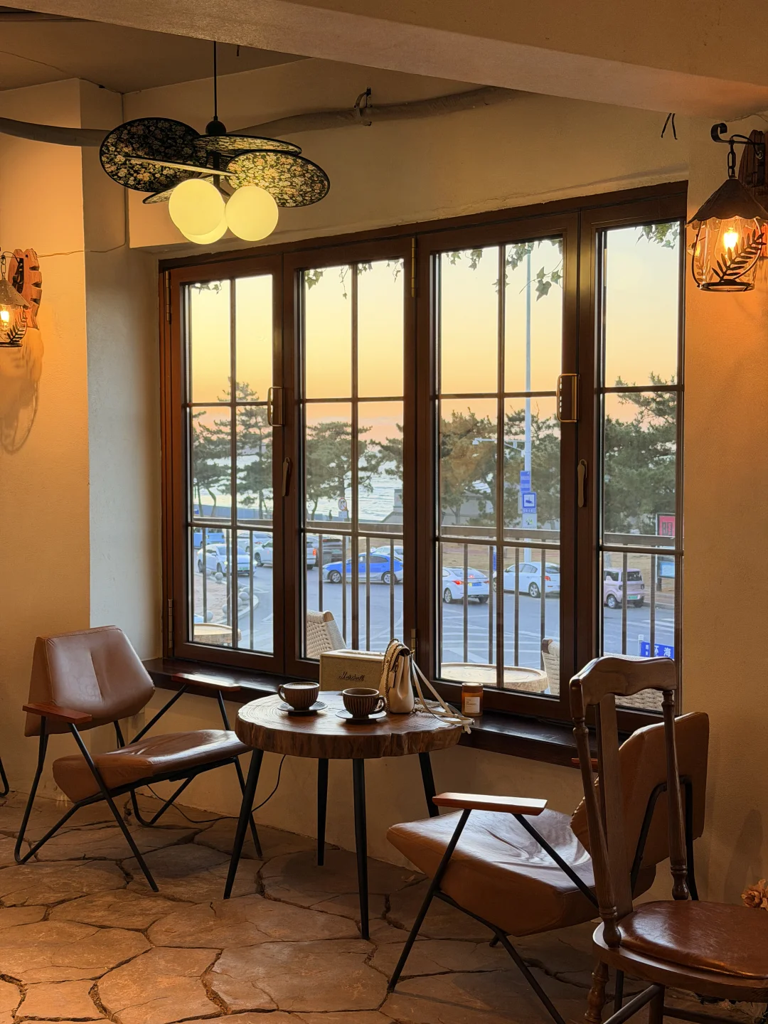 D2层有几个面朝大海的窗景🪟座位,窗边装饰的好漂亮,我和朋友就在这里呆到了日落,还拍到了人生照片!