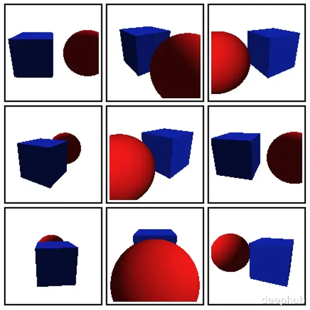 接下来从零实现NeRF架构,在一个包含蓝色立方体和红色球体的简单数据集上训练。