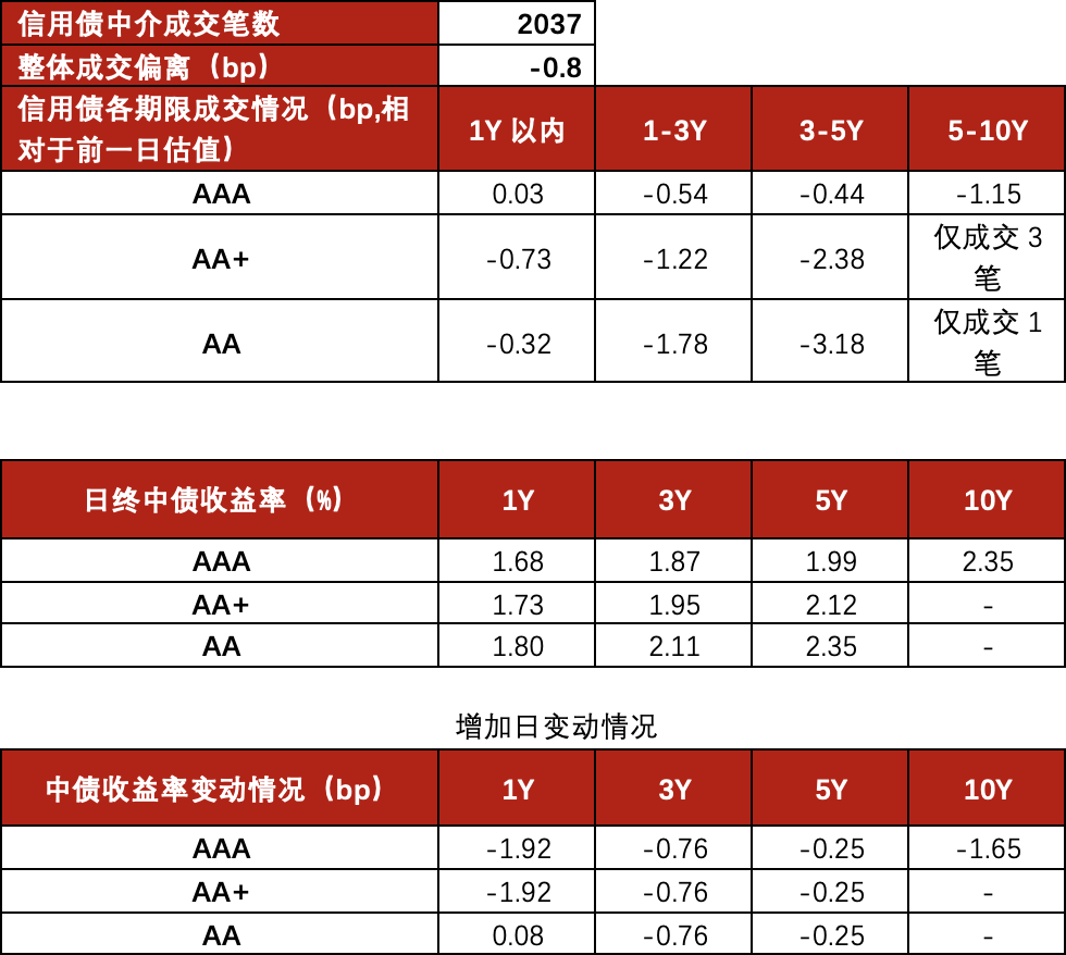 受到缴税期影响,资金价格有所波动,DR001上涨5.4bp至1.37%左右,短期仍需警惕缴税因素带来的扰动。短期内债市仍偏震荡,机构多持有carry策略,高票息资产受追捧力度较大。长端近期有配置力量入场上行空间受限,后续仍需观察,日内如遇收益率下行可逐步减仓。权益方面,本周以来沪深两市成交额回落至2.7万亿左右,整体降温意图明显,对长端产生一定支撑。但考虑到权益市场自发向上力量较强,结合监管目标,中长期或走慢牛态势,长端仍需谨慎。信用债近期情绪较好,可逐步择机减仓的同时瞄准高收益中短久期资产。