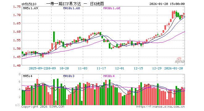1月20日,一带一路ETF易方达(515110)涨0.59%,成交额690.76万元。当日份额减少100.00万份,最新份额为2.18亿份,近20个交易日份额减少200.00万份。最新资产净值计算值为3.73亿元。