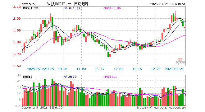 1月21日,科技50ETF(515750)开盘跌0.67%,报1.918元。科技50ETF(515750)重仓股方面,立讯精密开盘跌1.41%,阳光电源涨0.06%,亿纬锂能跌0.50%,歌尔股份跌1.52%,宁德时代涨0.67%,长川科技涨0.15%,烽火通信涨0.11%,寒武纪跌0.57%,领益智造跌1.10%,鹏鼎控股跌0.84%。