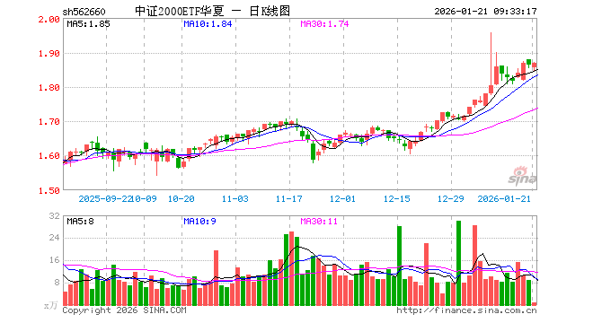1月21日,中证2000ETF华夏(562660)开盘跌0.48%,报1.855元。中证2000ETF华夏(562660)重仓股方面,天奥电子开盘跌1.28%,国恩股份涨0.00%,亚太股份跌0.97%,宝胜股份跌1.05%,绿色动力涨0.14%,春秋电子跌0.83%,光电股份跌0.75%,麦克奥迪跌0.98%,杰普特涨0.00%,道恩股份跌0.76%。