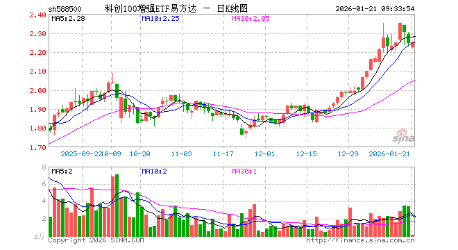 科创100增强ETF易方达(588500)业绩比较基准为上证科创板100指数收益率,管理人为易方达基金管理有限公司,基金经理为殷明、王建军,成立(2024-06-27)以来回报为125.11%,近一个月回报为19.81%。