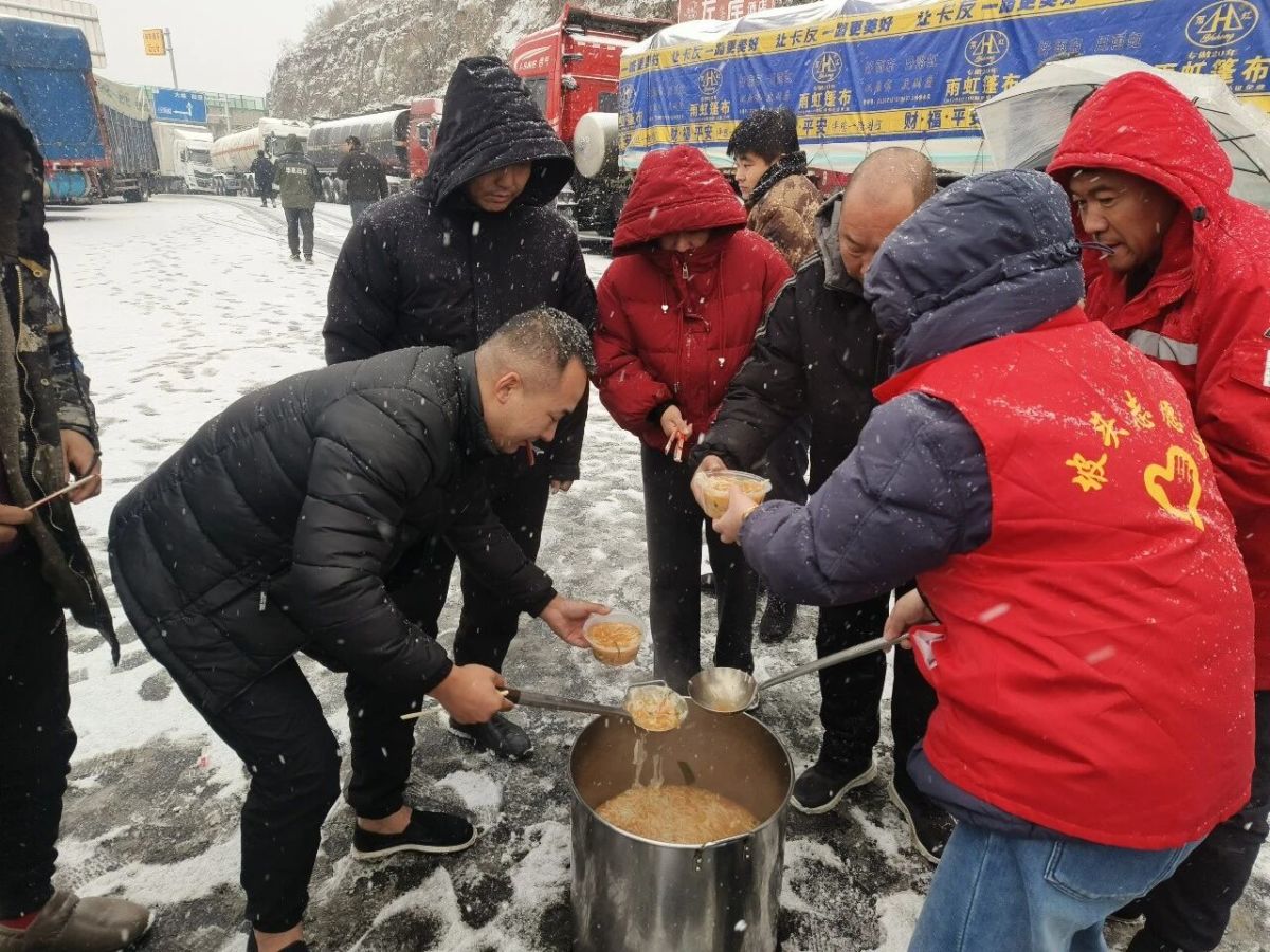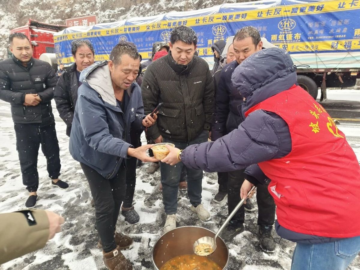 “本来还在发愁吃不上热饭,没想到志愿者这么快就送来了,不仅暖了肚子,更暖了心窝!”来自山西的货车司机王师傅捧着热饭菜感动地说。