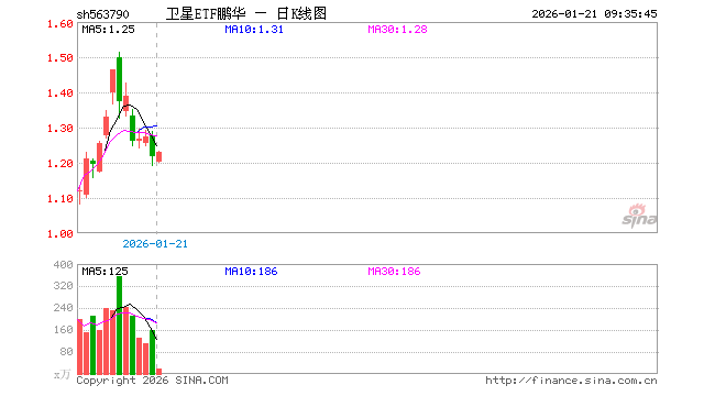 1月21日,卫星ETF鹏华(563790)开盘跌1.32%,报1.200元。卫星ETF鹏华(563790)重仓股方面,中国卫星开盘涨0.01%,航天电子跌0.42%,臻镭科技涨1.07%,中国卫通跌2.68%,中科星图跌0.03%,华测导航跌0.56%,北斗星通跌0.67%,北方导航跌0.80%,芯原股份跌1.22%,国博电子涨0.09%。