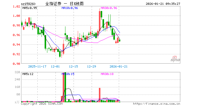 1月21日,证券ETF博时(159260)开盘跌0.42%,报0.950元。证券ETF博时(159260)重仓股方面,东方财富开盘跌0.04%,中信证券跌0.07%,国泰海通跌0.15%,华泰证券跌0.30%,广发证券跌0.48%,招商证券跌0.35%,东方证券跌0.19%,申万宏源跌0.39%,兴业证券跌0.29%,中金公司跌0.17%。