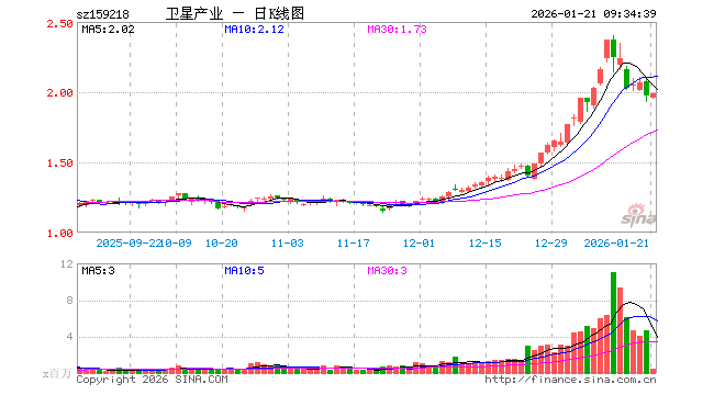 卫星产业ETF(159218)业绩比较基准为中证卫星产业指数收益率,管理人为招商基金管理有限公司,基金经理为许荣漫,成立(2025-05-14)以来回报为97.86%,近一个月回报为36.85%。