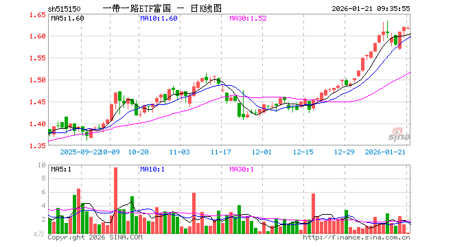 1月21日,一带一路ETF富国(515150)开盘跌0.25%,报1.616元。一带一路ETF富国(515150)重仓股方面,平高电气开盘跌1.96%,山东黄金涨2.84%,紫金矿业涨1.21%,中远海控跌0.27%,广东宏大跌0.38%,中国铝业跌0.68%,小商品城涨0.12%,中远海发涨0.00%,中海油服跌0.07%,云铝股份跌0.93%。