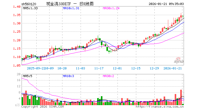现金流500ETF(560120)业绩比较基准为中证500自由现金流指数收益率,管理人为华夏基金管理有限公司,基金经理为杨斯琪,成立(2025-07-23)以来回报为34.20%,近一个月回报为11.75%。