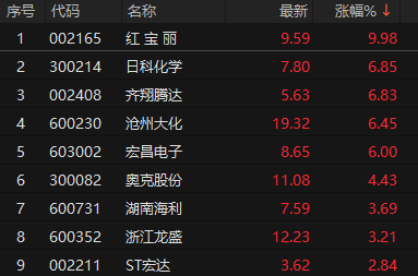 化工板块表现活跃 红宝丽2连板