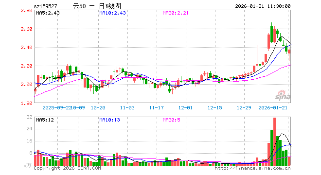 1月21日,截止午间收盘,云计算ETF广发(159527)涨1.02%,报2.372元,成交额1327.27万元。云计算ETF广发(159527)重仓股方面,中际旭创截止午盘涨1.50%,新易盛涨3.86%,科大讯飞涨0.20%,中科曙光涨5.16%,浪潮信息涨2.20%,金山办公涨0.09%,紫光股份涨0.34%,恒生电子跌0.09%,润和软件跌0.46%,拓维信息涨0.78%。