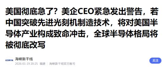 美国彻底急了?美企CEO紧急发出警告,振聋发聩! 最近美国半导体圈炸了锅,一则警告听得不少大佬坐立难安。发出警报的不是政坛人物,而是美国光刻新贵 Substrate 的创始人兼 CEO 詹姆斯・普劳德,这位连大学都没上、靠 “蒂尔奖金” 起家的创业先锋。 在接受美媒采访时说得斩钉截铁:“要是中国啃下先进光刻机这块硬骨头,剩下的供应链他们早晚能全搞定,到时候美国半导体产业就得面临致命打击!” 这话可不是危言耸听,毕竟说这话的人正憋着颠覆行业。普劳德的公司刚拿了 1 亿美元融资,估值冲破 10 亿,目标就是用新型激光技术打败阿斯麦的光刻机。能看懂行业深浅的他,比谁都清楚:光刻机是半导体产业链的 “咽喉”,中国一旦突破,就等于挣脱了美国层层加码的技术枷锁。 这警告背后,藏着美国半导体产业的致命软肋,太依赖中国市场。2024 年数据显示,中国大陆是全球最大的半导体设备市场,花了近 500 亿美元买设备,占了全球 42.3% 的份额。 美国三大设备巨头应用材料、泛林集团、科磊更离不开中国:它们 37% 到 43% 的销售额都来自中国市场。就像商店老板天天盼着老主顾,突然听说老主顾要自己开工厂,能不急吗? 更让美国焦虑的是,中国的光刻机突破不是 “突然开挂”,而是实打实的步步为营。牵头这事的上海微电子,2002 年就带着国家任务成立了,一步步从 90 纳米做到了 28 纳米。 2025 年 5 月,他们刚交付了首台 28 纳米浸没式光刻机,用 ArFi 技术把等效分辨率做到 13.4 纳米,靠多重曝光工艺甚至能满足 7 纳米芯片的需求。到年底,这台设备还拿下了千万级的政府采购订单,而且是 “单一来源采购”,意思是这技术独一份,别人做不出来。 现在这些国产光刻机已经开始干活了。汽车芯片、物联网芯片、安防芯片这些咱们日常能用得上的,用 28 纳米、45 纳米设备完全够了。 国内车企早就开始用国产芯片,东南亚一些电子厂商也找上门来买,毕竟咱们的设备性价比高,还不用担心被美国卡脖子。这就像当年咱们造高铁,先把普通线路跑顺了,再攻复兴号,稳扎稳打。 其实早有人看透了这局。比尔・盖茨 2023 年在慕尼黑安全会议上就泼过冷水:“美国根本挡不住中国搞出强大的芯片,反而会逼着他们砸钱自己造。” 当时还有人骂他长他人志气,现在看这话成了预言。 美国 2018 年就开始搞管制,2022 年限 14 纳米以下设备,2025 年连维修零件都卡,结果呢?上海微电子的 EUV 光刻机原型机都快测试完了,专利里连光源、收集镜这些关键部件都搞定了,反而比原来计划的进度还快。 美国自己倒先乱了阵脚。英伟达因为新管制,一下子计提了 55 亿美元损失,原本能卖 160 亿的中国特供芯片也黄了。 德州仪器、ADI 这些巨头更离谱,为了抢最后一口饭,对华倾销模拟芯片,幅度居然超过 300%。这哪是 “技术封锁”,简直是 “饮鸩止渴”,现在赚的快钱,都是未来失去市场的代价。 更重要的是,美国本土制造根本顶不上来。英特尔卡在 10 纳米节点好几年,先进制程全靠台积电代工,成了名副其实的 “美积电”。 而中国这边,光光刻机产业链就拉起来上千家企业,从光源到镜头全是自己人,国产化率超过 85%。就像打仗,美国是孤军深入,中国是全民皆兵,谁能笑到最后一目了然。 有人说 “28 纳米不是最先进的,急什么?” 这话没看懂本质。半导体产业里,成熟制程才是 “基本盘”,占了全球芯片市场的 70% 以上。 汽车、家电、物联网这些刚需领域,根本用不上 5 纳米、3 纳米的高端芯片。中国先把成熟制程的设备做稳、做便宜,既能满足自己用,还能抢全球市场份额,这才是最聪明的 “农村包围城市”。 等 EUV 光刻机一量产,那才是真的 “改写格局”。上海微电子的原型机用了新方案,体积小三成,成本才是阿斯麦的六成,2026 年就能试产 4 纳米芯片。 到时候,美国半导体设备厂商的市场份额得被拦腰砍,台积电、三星的代工优势也会缩水。全球半导体产业会从 “美国说了算” 变成 “中美欧三分天下”,垄断暴利时代彻底结束。 但大势已经挡不住了:中国有全球最大的芯片市场,有每年新增的百万工程师,还有集中力量办大事的优势。美国越是封锁,中国的产业链就越结实,这是历史反复证明的道理。 普劳德的警告,与其说是 “威胁”,不如说是 “提醒”:半导体从来不是谁的 “私产”,技术垄断迟早要被打破。 美国要是真懂行,就该早点放弃 “零和博弈”,回到产业链合作的正道上来。不然等到中国 EUV 光刻机正式量产那天,恐怕就不是 “失去市场” 那么简单,而是彻底失去半导体产业的话语权了。