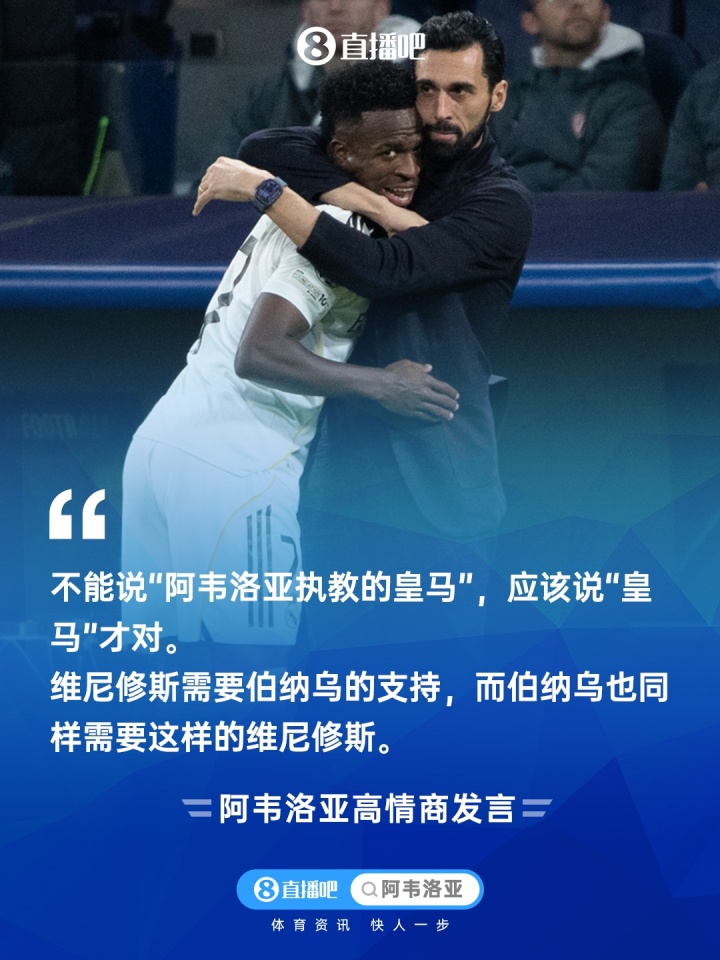 阿韦洛亚:他拥抱的不只是我,更是所有皇马球迷。这个拥抱,是对球迷支持的回馈。我们所有人都为这份“重逢”与“和解”感到开心,这正是我们希望看到的画面。维尼修斯需要伯纳乌的支持,而伯纳乌也同样需要这样的维尼修斯。我相信,在未来的日子里,伯纳乌会一如既往地为他欢呼。