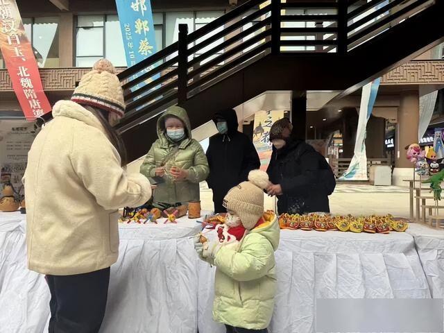 大集汇聚了84家企业及非遗传承人。现场展示的虎头鞋、水陆画、草编、铜版画、糖画、花馍、葫芦烙画等各具特色。不少家长带着孩子动手尝试剪纸、画糖画,在亲身体验中感受非遗魅力。