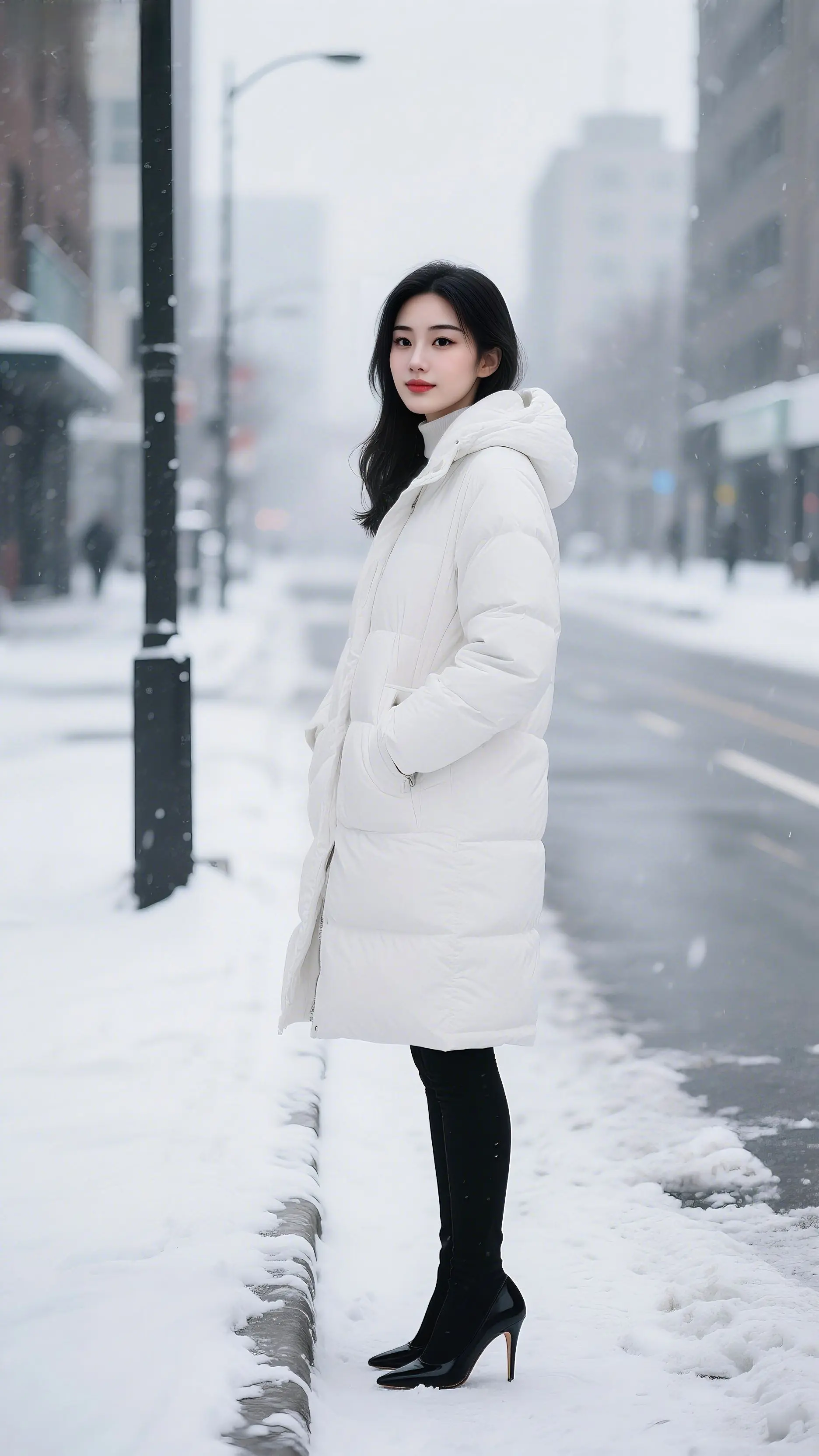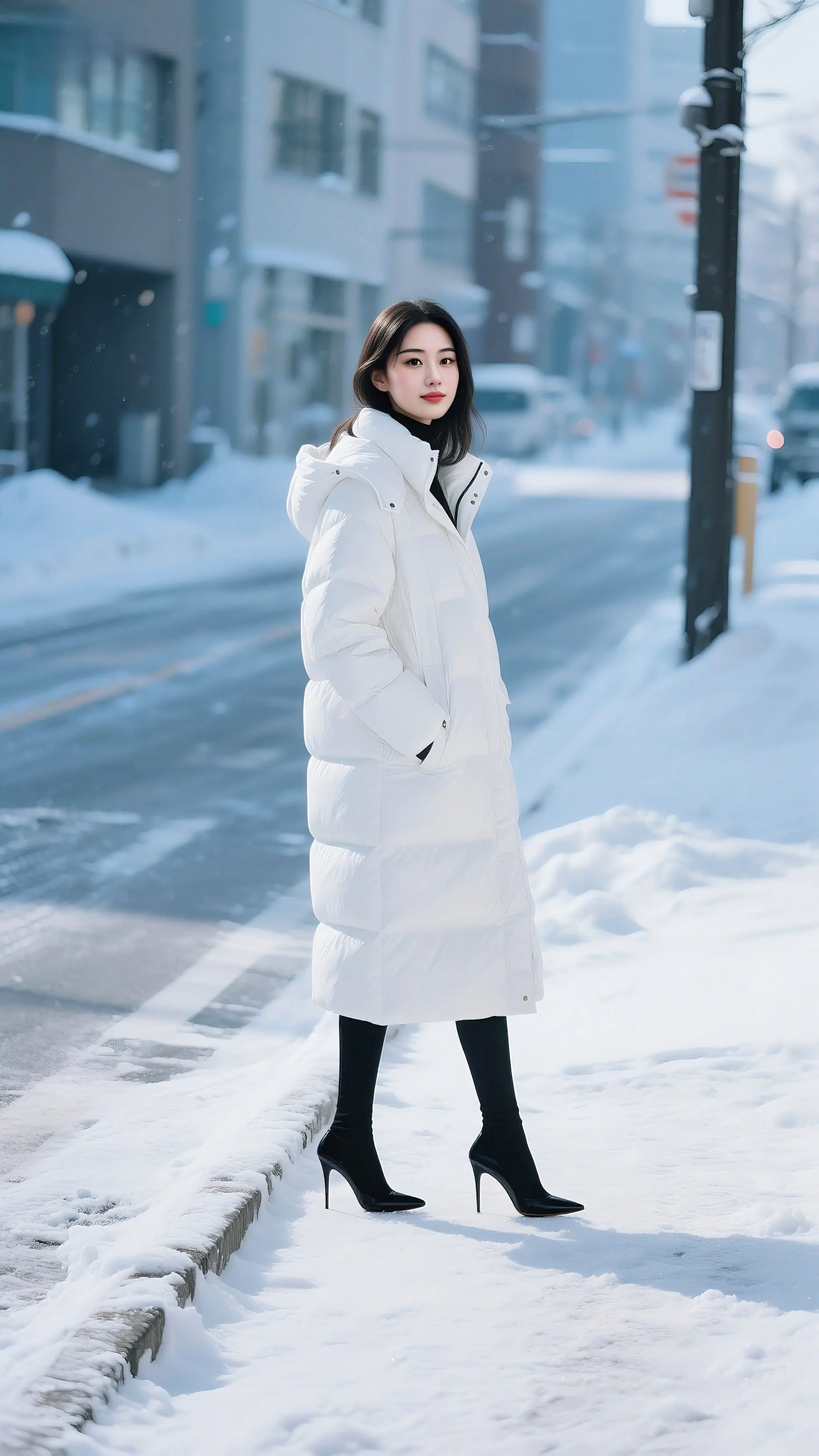 雪天和白色羽绒服是绝配,今天是行走的冬日氛围感~