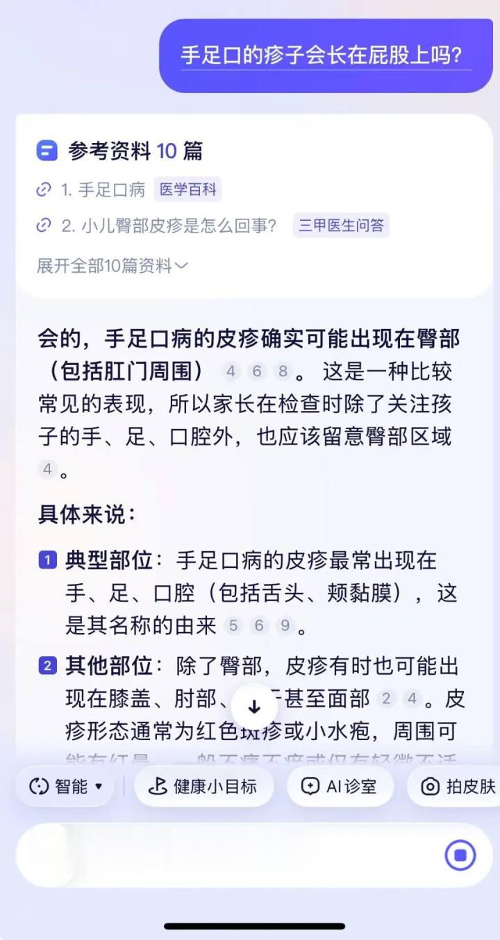 第二天一早,徐女士就带女儿再次前往医院,医生检查后表示“确实是手足口”。“吃了两天药就好了”,徐女士回想起来仍觉得有些不可思议,“本来只是试试看,没想到AI真说准了。”
