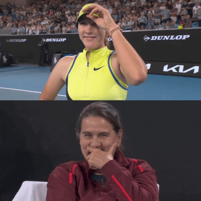 虎扑01月21日讯澳网女单首轮,上周阿德莱德站冠军、8号种子米拉-安德烈耶娃以4-6/6-3/6-0逆转维基奇,取得一波五连胜。赛后现场采访,米拉再次调侃团队。