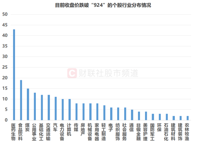 注:目前收盘价跌破“924”的个股行业分布情况(截至1月21日收盘)