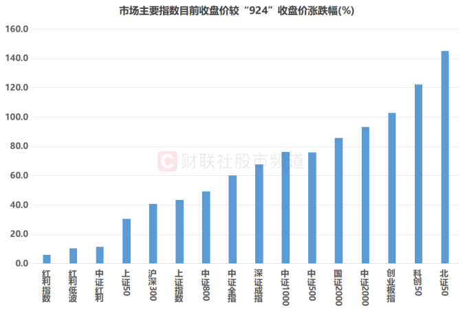 注:市场主要指数目前收盘价较“924”收盘价涨跌幅(截至1月21日收盘)