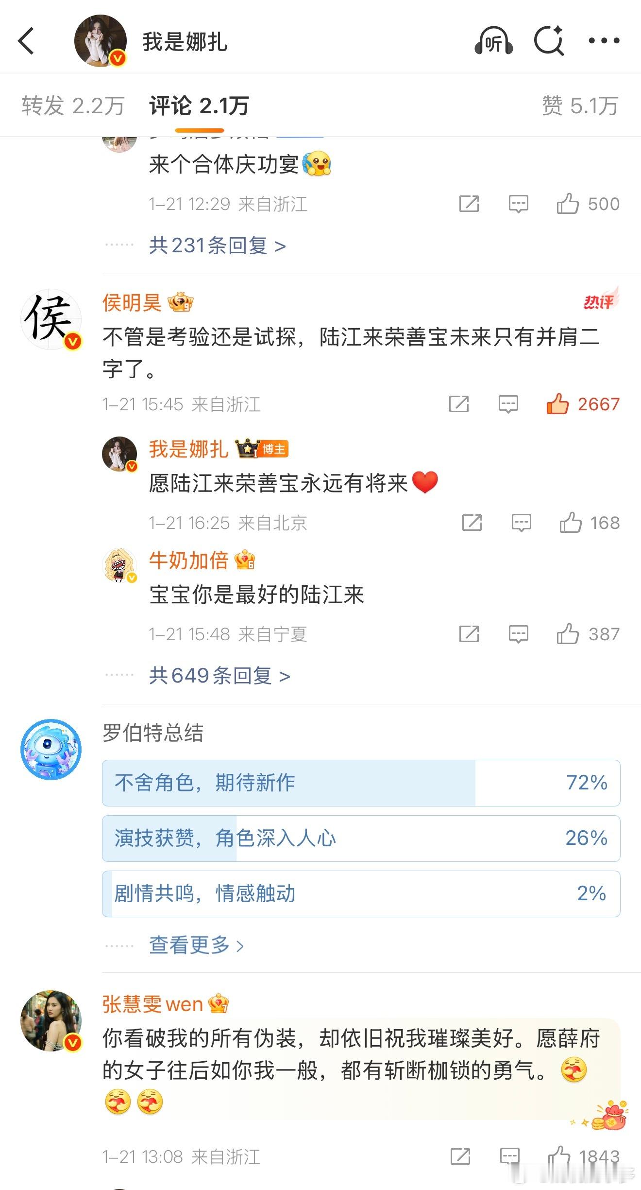 娜扎侯明昊收官了还在拉扯玉茗茶骨这就收官了啊啊好舍不得,娜扎发的告别长文也是让我们来者不善又嗑到一波,荣善宝给大家的话先是祖母然后是姐妹们再然后才是陆江来,当时就在想你把猫猫放这么后面猫猫会不会生气啊,来者不善第一时间肯定是评论区找猫吧,结果没有,也是等大家回复完小猫才回,收官当天还给我们来了一波拉扯,就这个来者不善好嗑,速拍第二季好吗,欠我们一场大婚来者不善