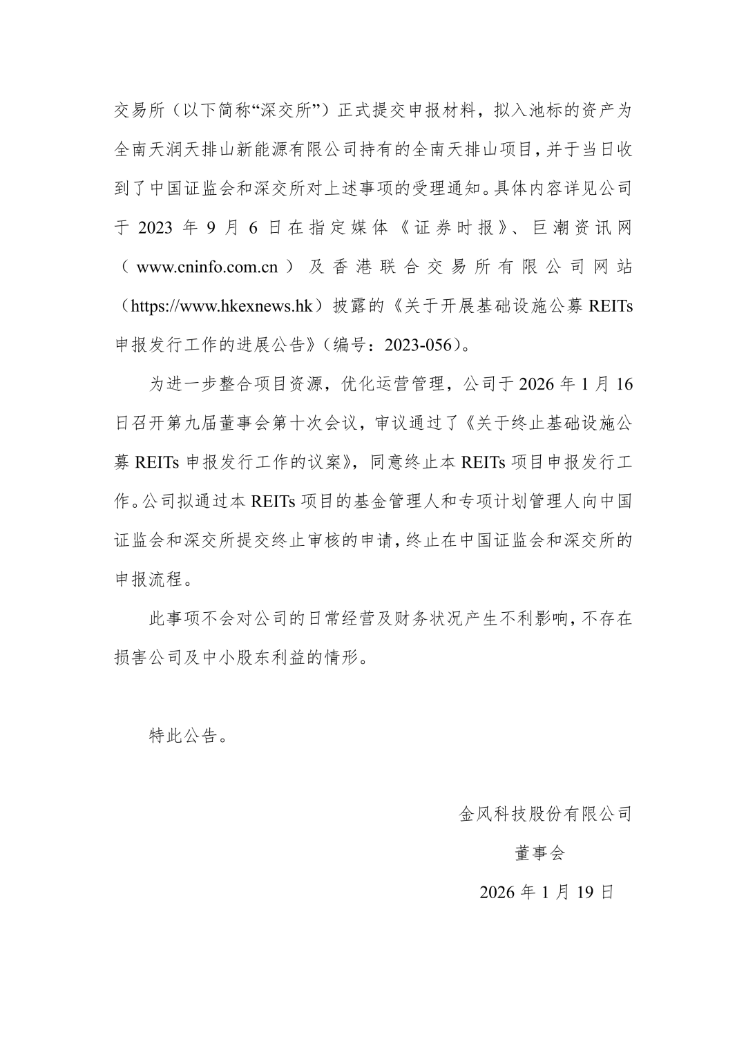 风电头条获悉,1月20日,金风科技发布公告,决定终止基础设施公募REITs的申报发行工作。