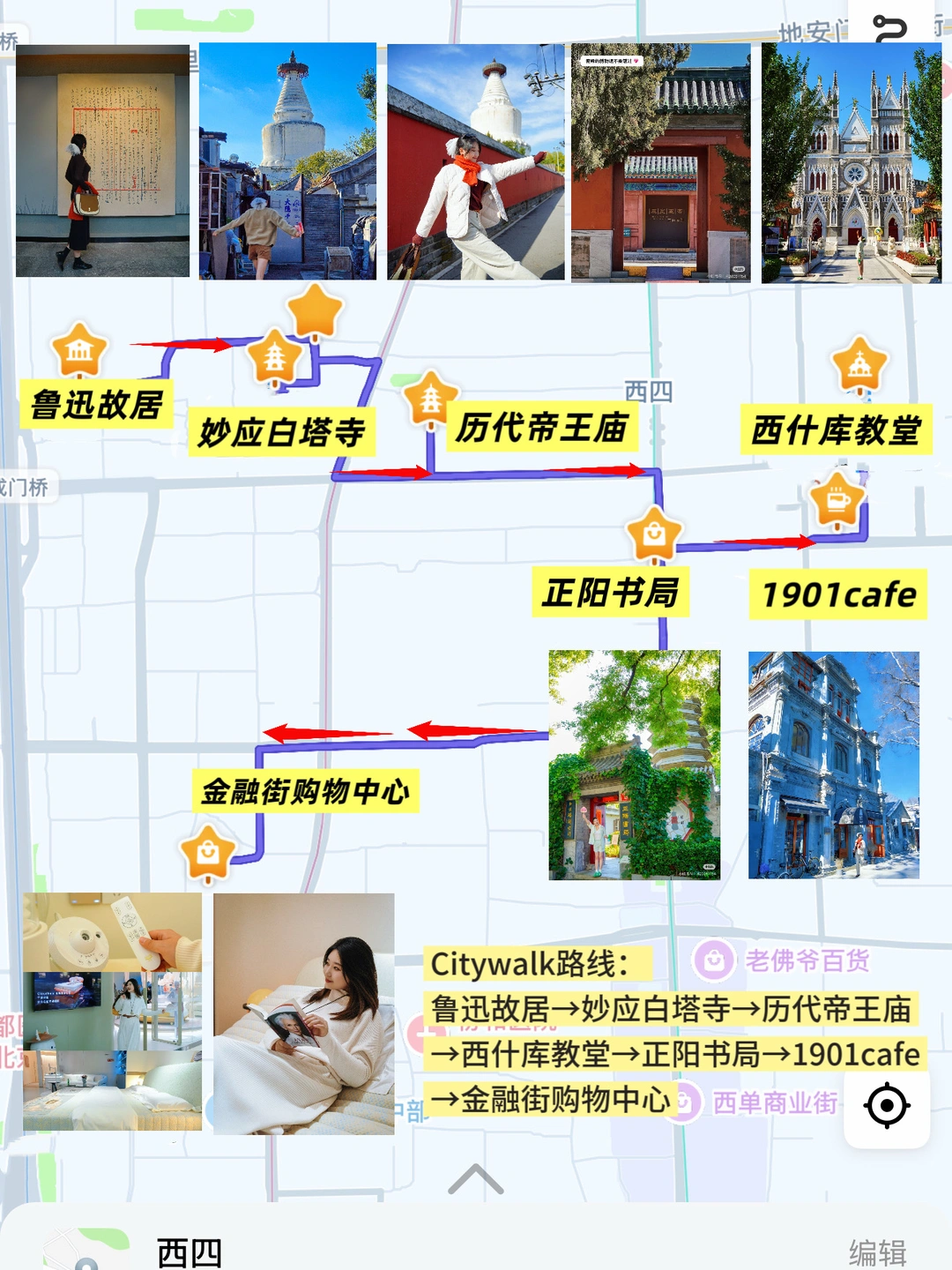 Hi~我是你的旅行搭子趁周末天气好,我又出门citywalk啦! 今天安利我反复爱上的这条“西四胡同路线” 有人文古建、市井胡同、名人故居… 好拍好逛,直接抄作业吧![派对R] . 🏃|路线安排 鲁迅博物馆➠白塔寺➠抄手胡同➠历代帝王庙➠西什库教堂➠正阳书局➠1901cafe ➠金融街 🚶|全长2.2km、免预约 ⏰|一整天、一下午 . 📸|必打卡点 . ▫妙应寺白塔 古老地标建筑之一,700年历史。红墙外的东夹道和抄手胡同能拍「易烊千玺、关晓彤同款」机位!很多家可以上房揭瓦的好看餐厅,不要太出片! . ▪鲁迅博物馆 有鲁迅故居当年布局、生平陈列展、盖章和文创~ . ▫正阳书局📚 只卖和老北京相关的书店,小院还藏着800年的万松老人塔 . ▪西什库教堂 中西合璧的哥特式建筑,阳光透过五彩花窗超美 . ▫️金融街 走到这里已经累了😮‍💨,正好安排一下放松体验!和姐妹预约了附近「金宝街·aise宝褓智能床垫体验空间」 听说科技圈的王腾夫妇推荐了它家智能床,实际到店果然很放松,空间简约素净,光线柔和,店员服务也恰到好处,只在你需要时上前提供专业的轻声介绍,与其说体验床垫,不如说是一次关于「对自己好」的启发🫨 . 体验「零重力」模式时,身体仿佛被稳稳托起,店员小姐姐介绍,这个得益于620个智能空气弹簧的动态支撑,依据身躯曲线实时调节,不只是升降,更是针对我们长期伏案、腰椎不堪重负的都市人提供个性化支撑,白天暴走的疲惫在这一刻悄然消散! . 突然觉着我们投资健身、美食、服装,却忽略了人生三分之一的时间在床上度过,睡眠质量直接决定了另外三分之二时间的精力和状态!! . 如果你也走完这条充满文化韵味的citywalk路线,不妨在行程最后走进金融街的「宝褓体验空间」感受一次科技睡眠带来的焕然一新吧!! .