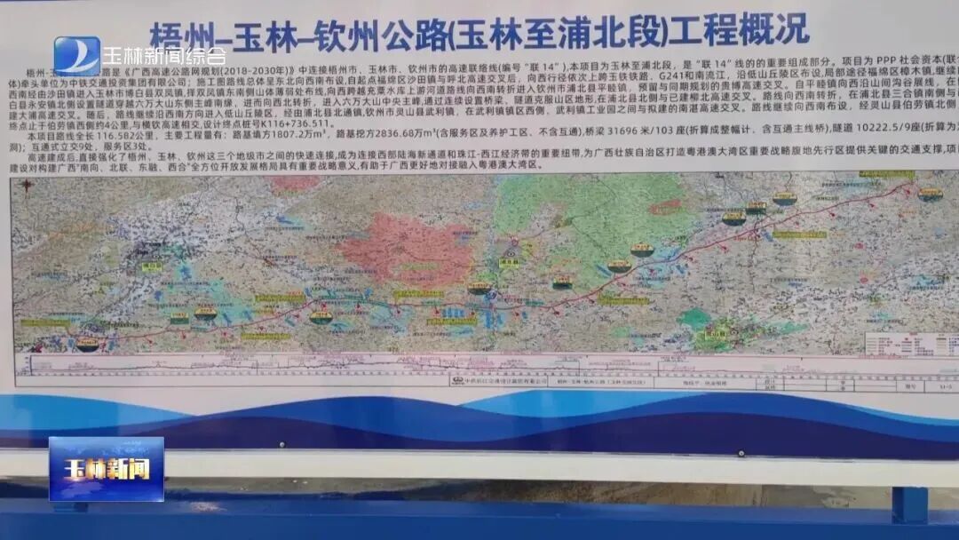 玉浦高速是《广西高速公路网规划(2018—2030年)》梧州经玉林到钦州公路的重要组成部分,起点位于玉林市福绵区沙田镇与呼北高速交叉,终点止于钦州市灵山县伯劳镇西侧约4公里,与横钦高速相交,主线采用双向4车道高速公路标准,设计速度120千米每小时,路基宽度26.5米,路线总里程116.582公里。项目建成以后,将进一步改善玉林和钦州之间的交通联系,促进沿线地区经济发展,助力乡村全面振兴。