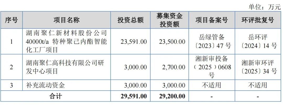 2025年6月30日,聚仁新材北交所IPO正式获受理,保荐机构为中信建投证券。此次发行拟募集资金2.92亿元,建设4万吨特种聚己内酯智能化工厂,聚焦高端医疗级、电子级产品,达产后预计新增年收入20亿元。