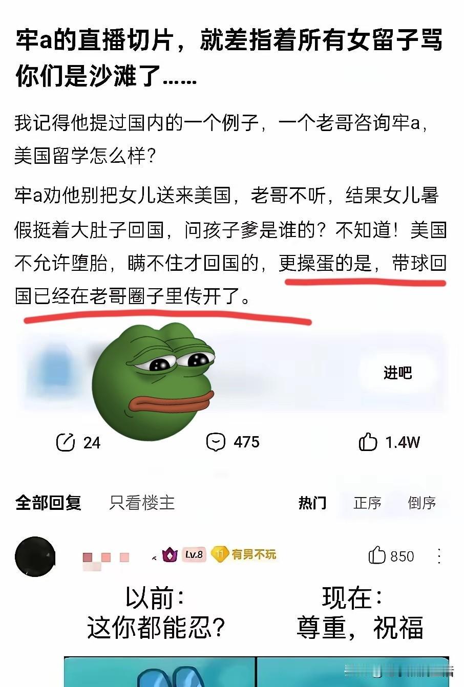 这就是牢A戳中有钱人的痛点吧! 母女两个暑假双双带球回国![捂脸] 不能说一定会是这样,最起码暑假回来带个球的事情还是有的吧。 那些在国内拼了老命挣钱的老板们,他有没有想到自己在酒桌上喝到吐,而自己的老婆和女儿在大洋彼岸在努力的学习,应该是欣慰的吧。 如果不是因为有些地方堕胎违法,估计这辈子都把这些老板们蒙在鼓里吧。 不是她们不坚定,而是敌人太狡猾,他们有一套量身定制的攻略,对于那些涉世未深的大家闺秀,基本上都是无敌,屡试不爽。 大家还是自重吧,自己的健康最重要!