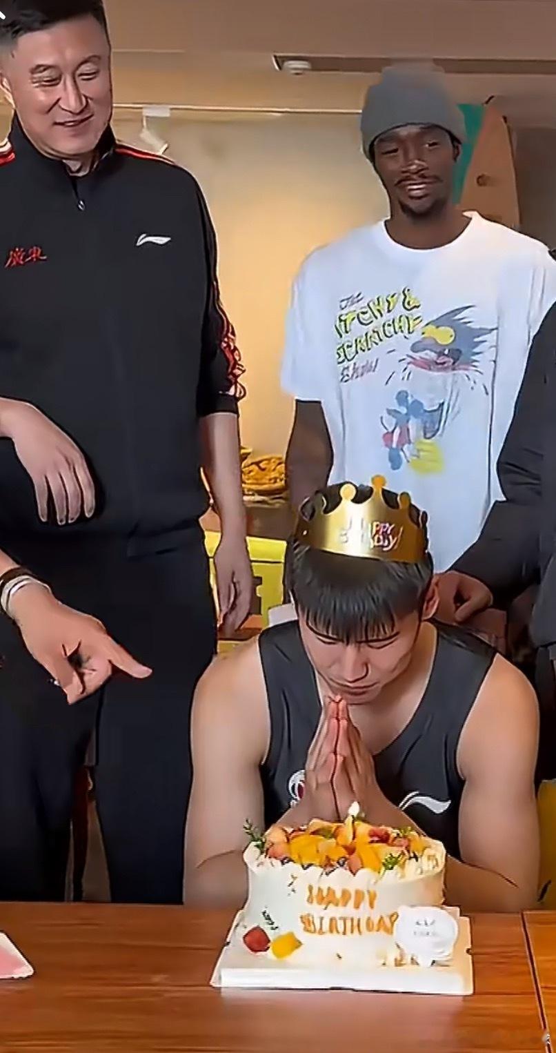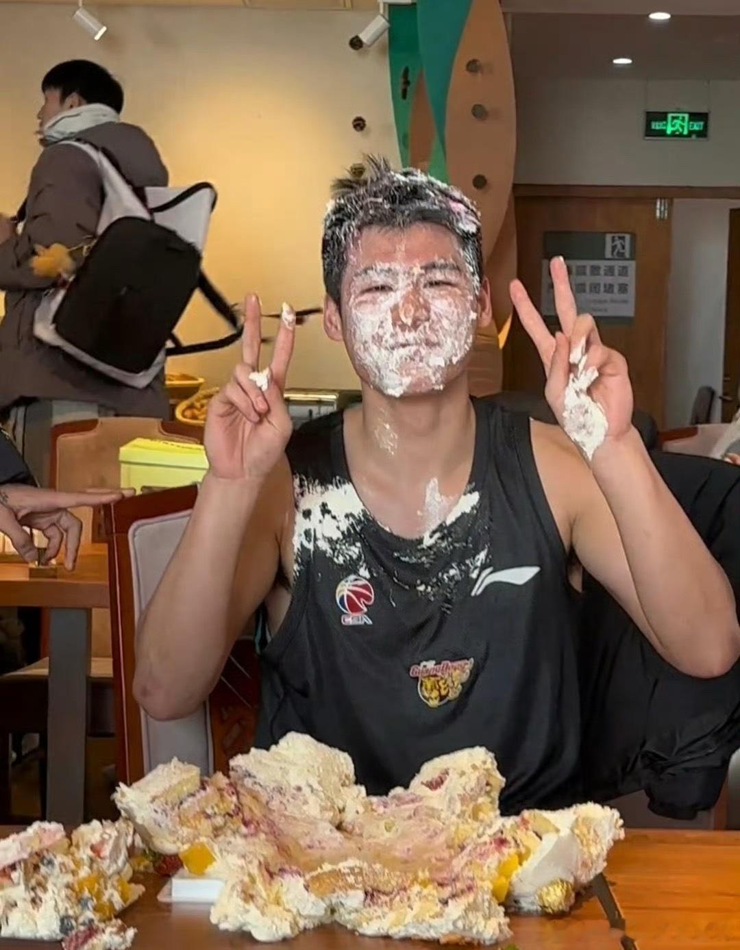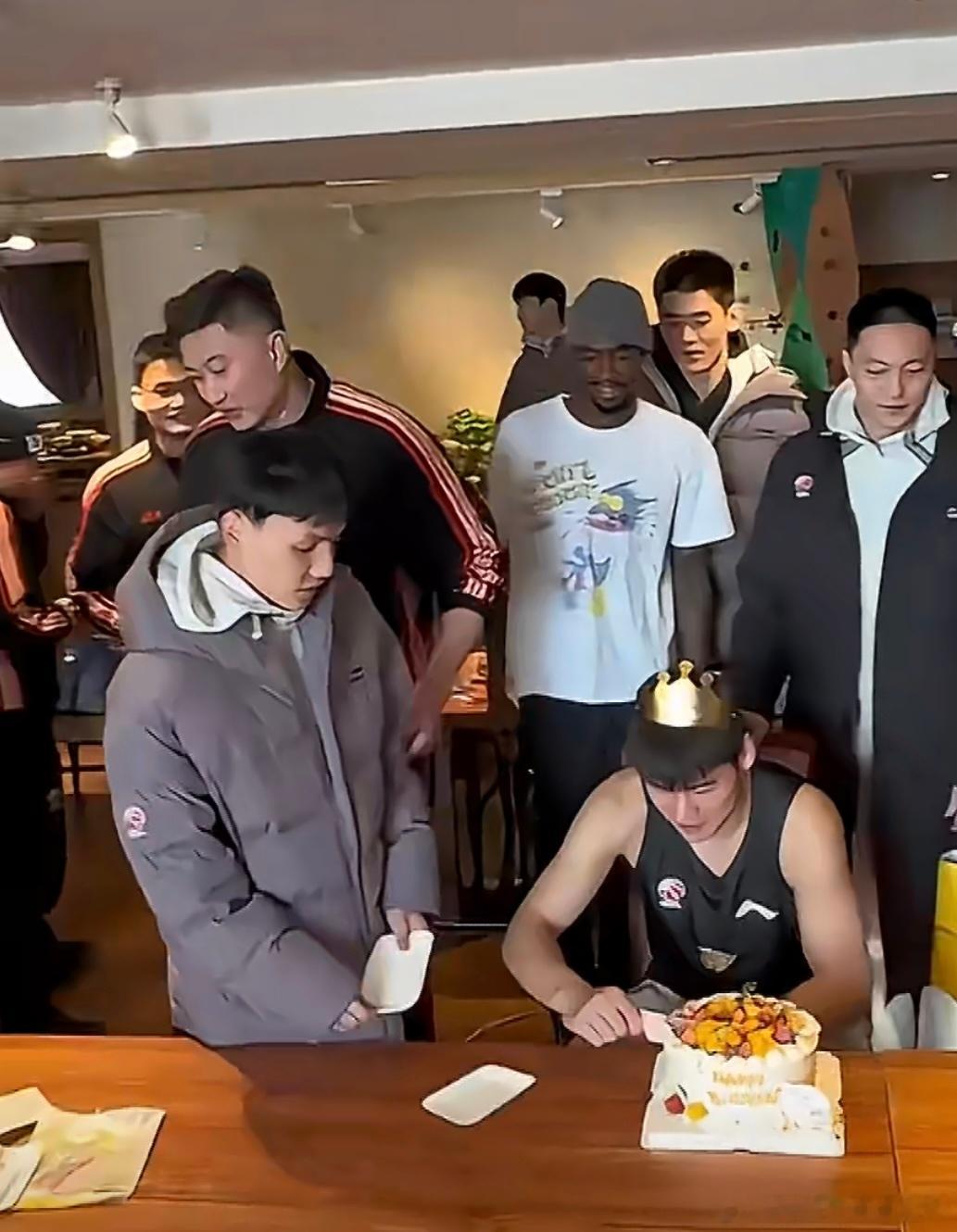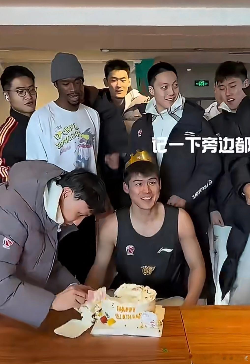 陈家政升上一队的第一个生日,祝陈家政生日快乐!广东宏远男篮全队在客场吉林长春为他