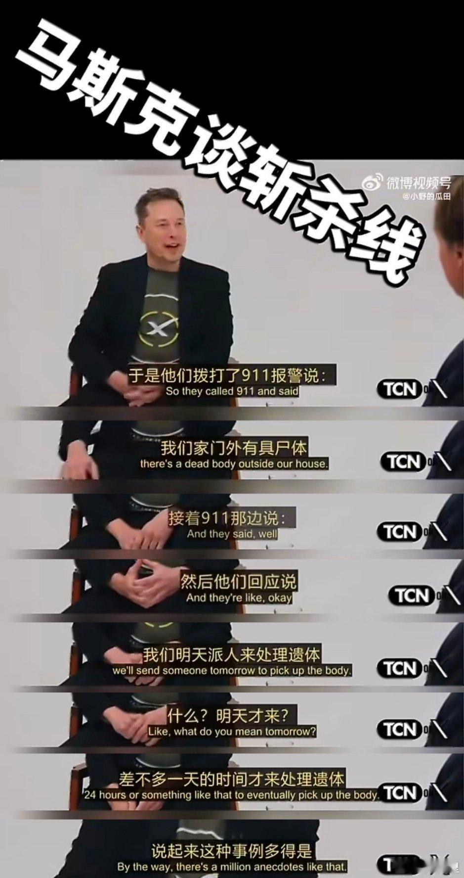 马斯克谈美国斩杀线马斯克说自己曾遇到一对夫妇,有天回家发现自家车库前有一具尸体…夫妇打电话给美国911,说明天才能派人来处理遗体。也就是美国对于这种事,已经稀松平常了,根本不着急处理。马斯克,最后说了一句:“说起来这种事例多的是”。马斯克全程一边笑一边说,根本不觉得稀罕。所以,现在的情况是,美国网友承认斩杀线的存在,美国财政部长承认存在,马斯克也承认存在,还说多的是…只有大殖子们还在嘴硬。