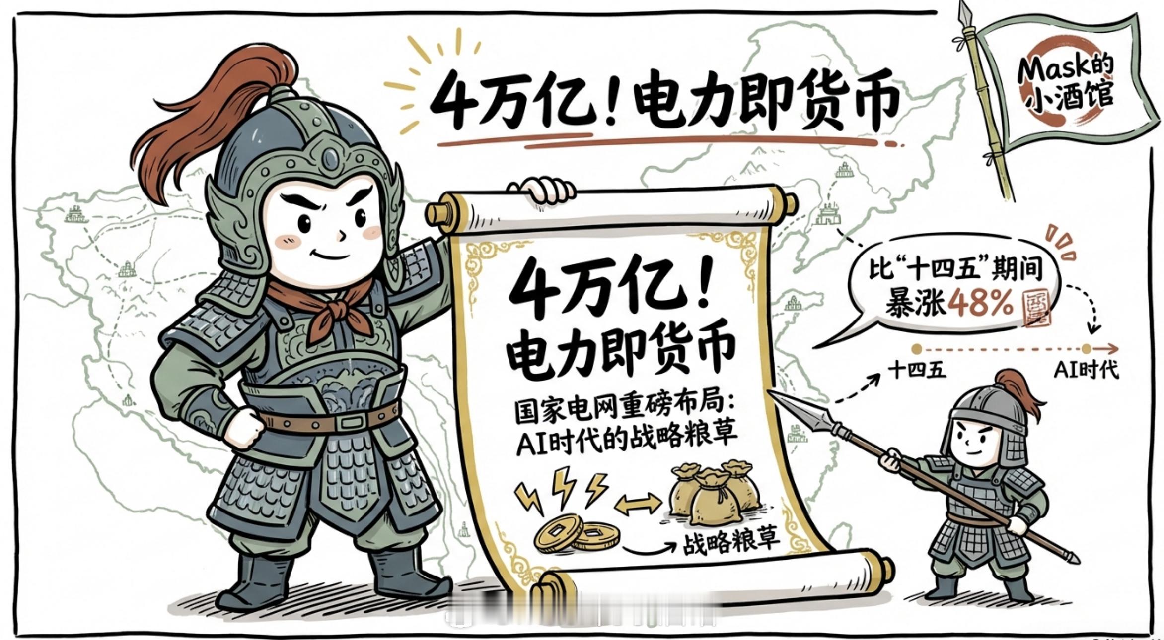 AI应用 | 电网4万亿,机会在哪里来说说市场。A股震荡一下是正常的,或者说只有调整一下,未来才能有更大的上涨空间。不断地连阳会积累大量的获利盘,现在调整一下让他们卖了,释放一部分抛压是很好的,不然在越高的位置,他们砸盘的力度就越大。A股如果想破07年的六千,那么这里震荡调整就是一个很自然的选择。之前的牛市闹得一地鸡毛,原因不还是因为融资盘在高点的时候平仓砸盘么。之前在三千就看好A股的人,现在最多亏点利润,本金肯定是没损失的。未来我继续看好A股慢牛,反正我现在已经留好加仓的子弹了~来说说AI。最近一段时间A股的AI应用承压,但实际上我们对于AI的投入还在继续。为什么这么说?过去三年,AI的钱都砸在了硬件上——芯片、算力、大模型训练。这叫"硬三年",修路阶段。但路修好了,总得有人跑吧?2026年,产业逻辑正在切换到"软三年"——谁能跑出商业模式,谁就吃到最大的红利。你看现在发生了什么:豆包日活突破千万,用户从"尝鲜"变成"高频使用";快手可灵的付费模式跑通了,用户愿意为AI生成的内容买单。更关键的是技术在质变。以前AI只能聊天,你问一句它答一句,本质是个"高级搜索框"。现在进化成了智能体(Agent),能帮你执行完整任务——订机票、写报告、操作电脑。B端企业愿意为"能干活"的AI买单,付费意愿比C端强多了。几个关键催化剂已经排上日程:2026年春节:大厂大概率开启"AI红包大战",C端渗透率可能迎来爆发;2026年Q1:DeepSeek V4、Gemini 3发布,模型能力再上台阶;2026年财报季:上市公司AI收入占比预计突破10%,业绩开始兑现。所以实际上软件ETF(159852)最近就有资金在抢跑了,一月初的时候就起来了一波行情。目前他的规模从年初的60亿出头,现在已经140多亿了,规模翻了一倍多。为什么?因为这个ETF覆盖三条主线:超级入口:腾讯、阿里这些掌握流量的巨头,能以最低成本把AI变现;垂类B端:AI+医疗、AI+金融,客户付费意愿强,有数据壁垒;出海应用:在海外已验证商业模式的公司,天花板更高。当然,现在压力也是有的,AI的波动比较大,而且板块还在从"炒概念"向"看基本面"切换,情绪波动剧烈。所以后面如果有AI应用的朋友,就需要关注一下春节、Q1模型发布、财报季这几个关键节点。一句话,AI应用正在从"烧钱讲故事"走向"赚钱立业绩",持有的朋友要做好管好仓位,耐心等待。电力,在未来可能会成为一种货币。前段时间,国家电网甩出一个重磅消息:未来五年,投资4万亿用于更新升级电网。4万亿是什么概念?比“十四五”期间的电网投资直接暴涨48%。很多人没反应过来:修电网而已,至于花这么多钱吗?今天我就把这笔钱背后的底层逻辑抽丝剥茧讲透——这不仅是一笔投资,更是东大在AI时代的一次战略卡位。一、算力下半场,电就是货币要理解这4万亿,先搞懂一个核心判断:算力下半场,电就是货币。过去几十年,大国科技竞争的核心是芯片。谁的制程更先进,晶体管塞得更多,谁就能在算力上碾压对手。14纳米、7纳米、5纳米、3纳米,大家拼命把晶体管做小,就像考试时尖子生从90分冲到99分。但现在,这条路快走到头了。一个原子直径约0.1纳米,3纳米芯片的晶体管之间,只隔着30个原子。再往下做,量子隧穿效应会让电子“穿墙而过”,芯片直接报废。物理定律画了一条红线,谁也跨不过去。那接下来比什么?比电。你以为AI变强是靠天才程序员的神奇代码?错了,是“大力出奇迹”——用海量数据喂给海量GPU,跑海量计算。这就像练肌肉,没有秘籍,就是天天举铁。而AI的“举铁燃料”,就是电。现在训练一个顶级大模型,需要几万张GPU同时运转,每张卡的功耗堪比一台大功率微波炉,24小时不停歇。一个万卡集群跑一年,电费就要千万美元。当芯片逼近物理极限,科技竞争的规则就变了:从“比谁的芯片更聪明”,变成“比谁的电更多、更便宜、更稳定”。国家电网这4万亿,砸的就是这个未来战场的“弹药库”。二、除了东大,全世界都在缺电那现在全球的电力格局是什么样的?一个字:缺。欧洲缺到什么程度?铝厂集体关门。炼铝是实打实的“电老虎”,一吨铝要耗1.3万度电。电价暴涨后,欧洲铝企的利润全被电费吞掉。德国海德鲁铝业直接关停本土20%产能,整个欧洲的铝产能这几年砍了近一半——高电价正在掏空欧洲的工业根基。美国缺到什么程度?要把退役的核电站重新拉出来用。微软为了给AI数据中心供电,直接和能源公司签了20年购电协议,锁定一座老核电站的电力。20年的长约,说白了就是提前20年“抢电”。更麻烦的是,电力矛盾在美国爆发了。美国的选民质问:凭什么科技巨头的数据中心24小时烧电,账单却要美国人分摊?一旦涉及选票,任何长期电力规划都得让路。你看,在AI时代最关键的电力赛道上,欧美正在被卡脖子。那东大呢?为什么东大不缺电?答案就藏在三张王牌里。三、东大凭什么不缺电?三张王牌打穿产业链第一张王牌:发电。你肯定听过“东大发电装机量全球第一”,但这个第一的含金量,远超你的想象。国家能源局2025年数据显示,东大发电总装机容量超38亿千瓦,是美国的近3倍。更重要的是,我们还把发电产业链从头到尾攥在了手里。全球80%的光伏组件来自东大,97%的多晶硅来自东大,85%的逆变器来自东大。这就像造汽车,东大不仅有最大的车企,还自己开铁矿、炼钢铁、造发动机、产轮胎,全流程自给自足。别的国家想搞新能源?
