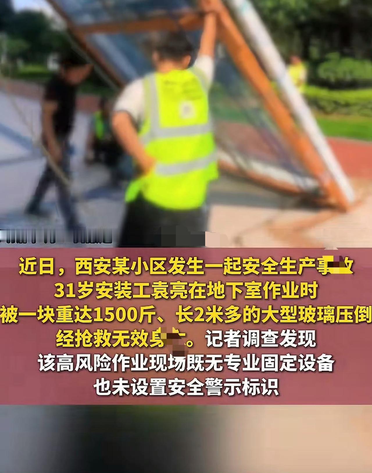 31岁正是扛家的年纪,上有老下有小,就为了1500块安装费,把命丢在西安那个地下室里!谁能想到,一块鱼池观景玻璃,居然成了索命的凶器? 袁亮不过是想多挣点房贷钱,可他哪儿知道,这活儿从根上就全是坑!1500斤的大家伙,连个正经支护设备都没有,全靠几根木方临时撑着;分包商早就倒闭了还敢接单,吊装公司压根没这资质也敢上手;他手里虽有高空证,可哪儿摆弄过这么重的玻璃啊! 吸盘坏了耽误半小时,工人没法子只能用脚踩着装,袁亮心里说不定也打鼓,可想着赶紧干完拿钱,也就没多计较。就点根烟的功夫,他下意识松了一只手,万万没想到,玻璃“哐当”一下就倒了!颅脑被压碎的那一瞬间,他得有多疼、多绝望啊? 更让人寒心的是事后这一堆烂摊子!业主从头到尾躲着不露面,物业甩锅说“管不了”,监管部门你推我我推你,倒闭的分包商嘴上说“愿意担责”,关键信息半个字不肯透。那个带着血渍的施工坑还在那儿摆着,可一条鲜活的人命,再也回不来了。 高危活儿不是拿命换钱的买卖,1500块钱,买不走房贷压力,却填不满监管的大漏洞!底层劳动者的安全,总不能只靠自己小心吧?你们觉得,这场悲剧里,谁该负最大的责?小伙安装1500斤玻璃时被压身亡 玻璃 高危作业