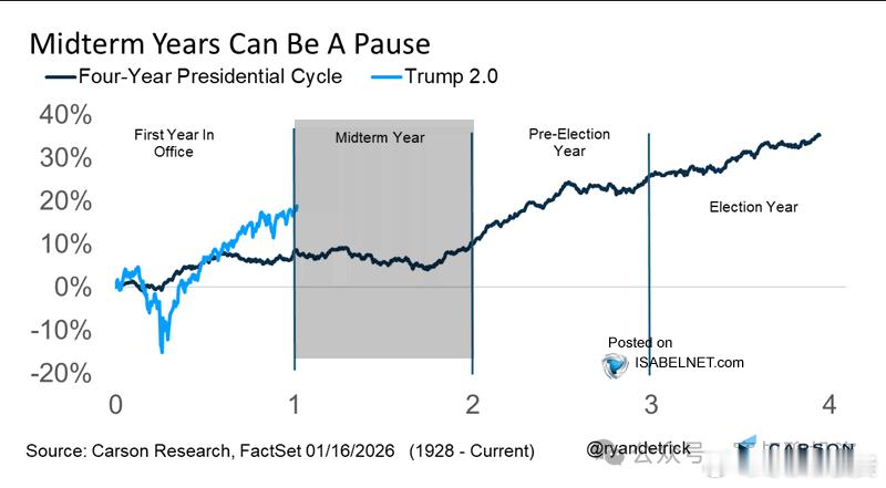 美债抛售、丹麦清仓,达利欧看空,我们应该恐惧还是贪婪(4)2026年的剧本考虑到未来中期选举和美债压力,川普大概率会继续他的“Taco策略”(极限施压),但冲突升级不符合任何人的利益。最后冲突大概率会通过和谈判化解;我认为:未来一段时间大概率有反弹,但对未来一年维持正收益且收益不低-需保持谨慎态度刚过去的2025年,美股的上涨从估值推动转化为盈利推动,之前估值的上涨是对未来盈利的预期,25年是盈利兑现的一年(图1)26年会怎么样?下图也可以看出,从历史统计来看,大选年的下一年股市涨幅一般来说较小,是4年中最小的,平均只有0.93%(图2)且上涨主要靠企业盈利推动,大选年下一年的企业盈利增长历史统计来看是4年中最高的有12.56%(图3)目前股价稍微超出4年的趋势线。如果历史踩着相同的韵律,26年有概率是收益平庸的一年,最坏情况是负收益的一年;(图4)6年美股的核心变量,是企业盈利的增速企业增速关键是增速变化,增速不及预期可能导致股市下跌利率货币政策、通胀、就业等等指标,影响股市的逻辑是,他们影响企业盈利,从而影响股市。相关盈利和估值的内容详见:最后投资中最重要的不是判断是否正确,而是分析框架和交易计划。盘中那些看似灵活的操作,其实是用极其不稳定的人性去对抗市场,用不确定应对不确定,必然失败。而用概率应对市场,才有可能盈利。提前计划不一定是最优的方案,但临时决策一定是最糟糕的方案。长期获得收益,从不依赖预测未来,而是来自:可重复的流程、可量化的边界、可执行的纪律。用确定性的规则,去驾驭不确定性的市场。怎么制定交易计划详见:如何构建个人投资系统我们在社群分享了标普和纳斯达克的交易策略,以及抄底计划;(1)减小波动,更加安心投资下图黄线是策略的净值曲线,k线为标普500,牺牲一些收益,换取更小回撤,更加安心投资;比如2008年金融危机买入并持有回撤约50%,策略回撤15%;2020年疫情中最大回撤35%,策略回撤12%;(图5)(2)加仓增加收益;抄底收集带血筹码(图6)下图是绿线是加仓/抄底线(大多都在阶段性低点),红线是止损过去两年加仓/抄底和止损原文:网页链接