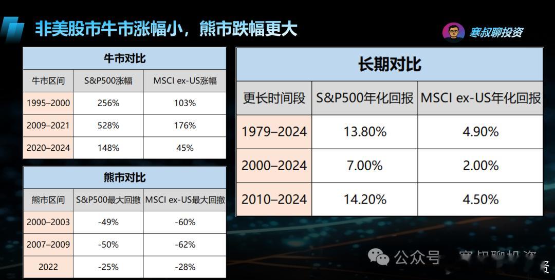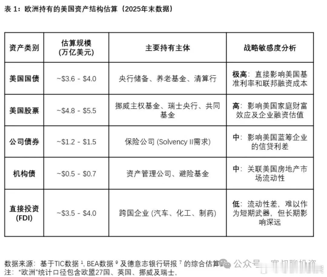 美债抛售、丹麦清仓,达利欧看空,我们应该恐惧还是贪婪(1)一、格陵兰危机与“卖出美国”的至暗时刻特朗普声称必须拥有格陵兰岛,并威胁要在达沃斯高级别会议前对多个欧洲国家加征关税。事件迅速在资本市场引发了连锁反应。大洋彼岸的欧洲似乎动了真格,直接瞄准了美元霸权的命门——美国国债。管理着 250 亿美元资产的丹麦养老金 AkademikerPension(服务于教师和学者)周二公开宣称:计划在 1 月底前出售其持有的全部美国国债,约 1 亿美元。理由非常直白:“特朗普的政策已引发不容忽视的信用风险。” 与此同时,另外两家管理着约 1200 亿美元资金的丹麦巨头 PFA 和 Laerernes Pension,也已经在本月大幅削减美债持仓。市场随即重现了惨烈的“卖出美国”交易模式。1 月 20 日,美国市场上演“股债汇三杀”:道指暴跌 1.76%;标普 500 指数跌 2.06%,创下去年 10 月以来最大单日跌幅;纳斯达克综合指数重挫 2.39%;10 年期美债收益率飙升至 4.3%(美债价格下跌)瑞·达利欧(Ray Dalio)在近期接受 CNBC 采访时的言论,更是为这种悲观情绪火上浇油。他直言:美元作为计价与储备的相对强势在下降,债务负担与再通胀政策让真实回报更容易被稀释。他认为,当风险溢价被压到极低、外部资本开始再平衡时,美国资产对全球投资者的“边际吸引力”会走弱,黄金与非美资产在组合里的权重将上升。看似一地鸡毛,但如果你被这些头条新闻牵着鼻子走,很可能就输了。二、“帝国黄昏”的真相面对欧洲的抛售和达利欧的看空,大家有没有想过一个核心问题:欧洲资金持有美国资产(美债、美股),究竟是美国的威胁,还是欧洲的示好?本质上,这是为了自身的利益。因为美国资产是全球最优质的资产。欧洲作为美国最大的债权人区域,其资本不仅支撑了美国国债市场,也推高了美国科技股的估值。根据美国财政部国际资本系统(TIC)数据,外国持有的美国证券总额已突破 30.9 万亿美元,其中欧洲投资者占据主导地位,公私部门合计持有接近 10 万亿美元 的美国资产(图1、2)。所谓的“将资本武器化”,通过“出售美国”来反制格陵兰危机,这真的是一个可持续的选项吗? 该机构投资官安德斯·舍尔德直言:“从根本上说,美国已经算不上一个优质信用主体;从长期看,美国政府的财政也不可持续。”问题是,你说说哪种货币更加可持续?投资从来不是看一个货币、一种资产有没有问题(都有问题),而是对比来看哪种资产相对不那么糟糕。如果不买美债美股,这些庞大的资金能去哪儿?难道去买大A?卖了特斯拉、英伟达、SpaceX 和 RLLB,然后跑去大A买“特斯拉概念”、“英伟达概念”、“航空概念股”?还是卖了美股大科技,回去增持欧洲自己的爱马仕、LV?虽然今年全球股市指数涨幅超过美股,但这只是暂时的,下图灰线是标普盈利增长但从过去历史中看,大部分时间标普公司的盈利和股价增涨都大于非美(图3)下图左图红线是美股回报,黄线是非美股市回报;右边体现了公司盈利,红线是美股的盈利,黄线是非美股市的盈利(图4)我们在社群中也曾从长期、熊市、牛市三个角度复盘,结论一致:美股优于非美(包含2001年互联网泡沫和2008年金融危机的数据统计)。(图5、6)以及衡量有什么资产,长期看会优于美股,以及美股是否值得投资的判断标准(图7):