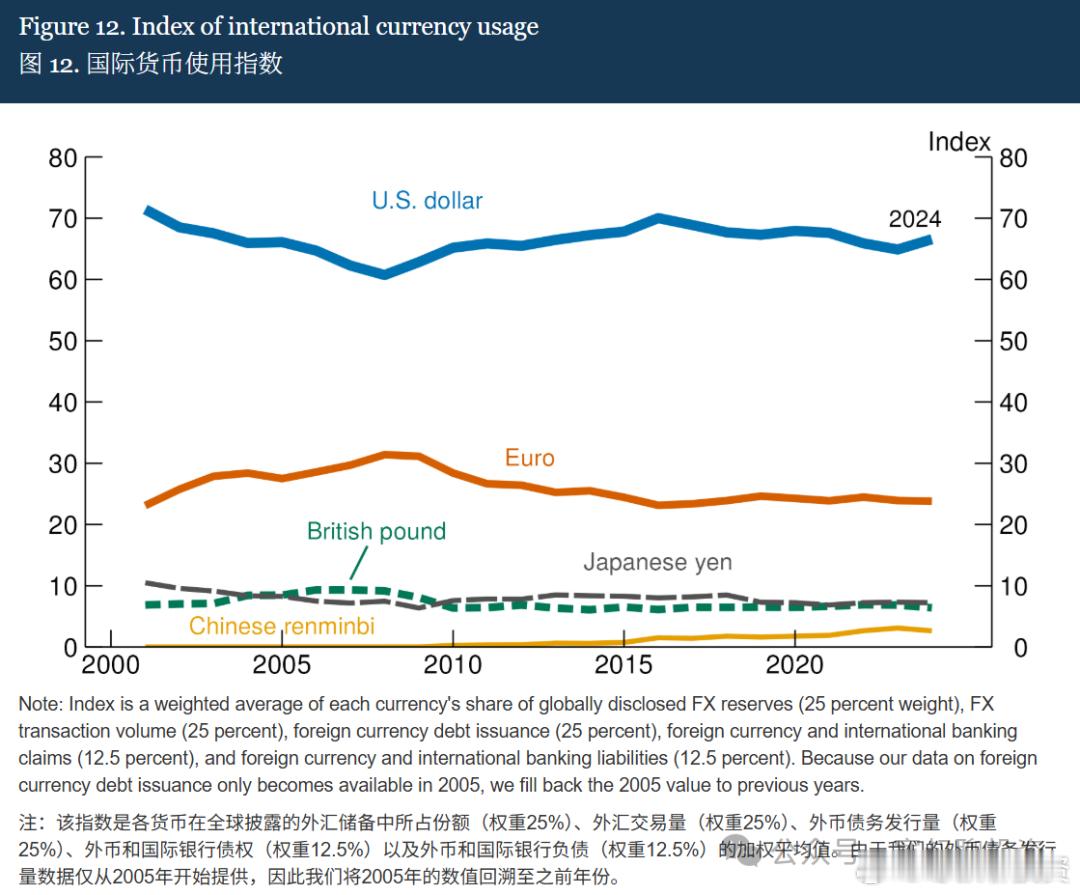 美债抛售、丹麦清仓,达利欧看空,我们应该恐惧还是贪婪(2)资金流向不会说谎:25年来说只有4月份海外资本抛售美债,其余月份均为增持(图1)全球各国过去两年增持美债规模整体还在上升趋势中,只有少数国家减持(图2)美元指数虽然今年下跌了约10%,看这张图似乎是美元快完了(图3)全球外汇储备中美元地位依旧无可动摇,虽然近期有所下降,但还是处在过去20年的高位(图4)美元在swift系统中国际支付份额过去15年并没有下降,这几年还持续上升(图5)国际货币使用指数来说暂时还看不到挑战者(图6)美元指数虽然今年下跌了10%,但是还是处在2009年以来的上升通道中:(图7)对于达利欧的说法,我们需要认真对待,但绝不能迷信。他老先生的逻辑分析框架非常值得学习,但预测往往有偏差。关于达利欧“帝国衰落”的伪证几年前他就警告,美国债务不可持续,美国要崩。结果呢?美债美股都没有崩。过去 50 年美国国债从 5000 亿美元飙升至 37 万亿美元,再增加一些,会崩吗?达利欧声称掌握了“帝国兴衰的规律”,认为美国自 2008 年泡沫破裂(私人债务占 GDP 超过 170%)后就进入衰落期,面临“印钞还是违约”的二选一。美国选择了印钞,导致高债务、贫富分化和货币超发,这是典型的“帝国晚期”特征。 达利欧另一个预测证伪是某大崛起他基于 500 年数据的“大周期”理论在具体应用时常常自相矛盾。例如他预测某大崛起、美国衰落,但实际上他列举的美国衰落因素(高负债、老龄化、贫富差距),在某大同样存在,甚至更为严峻。总结就是:长期看美股长牛的基础没有任何动摇。短期呢?