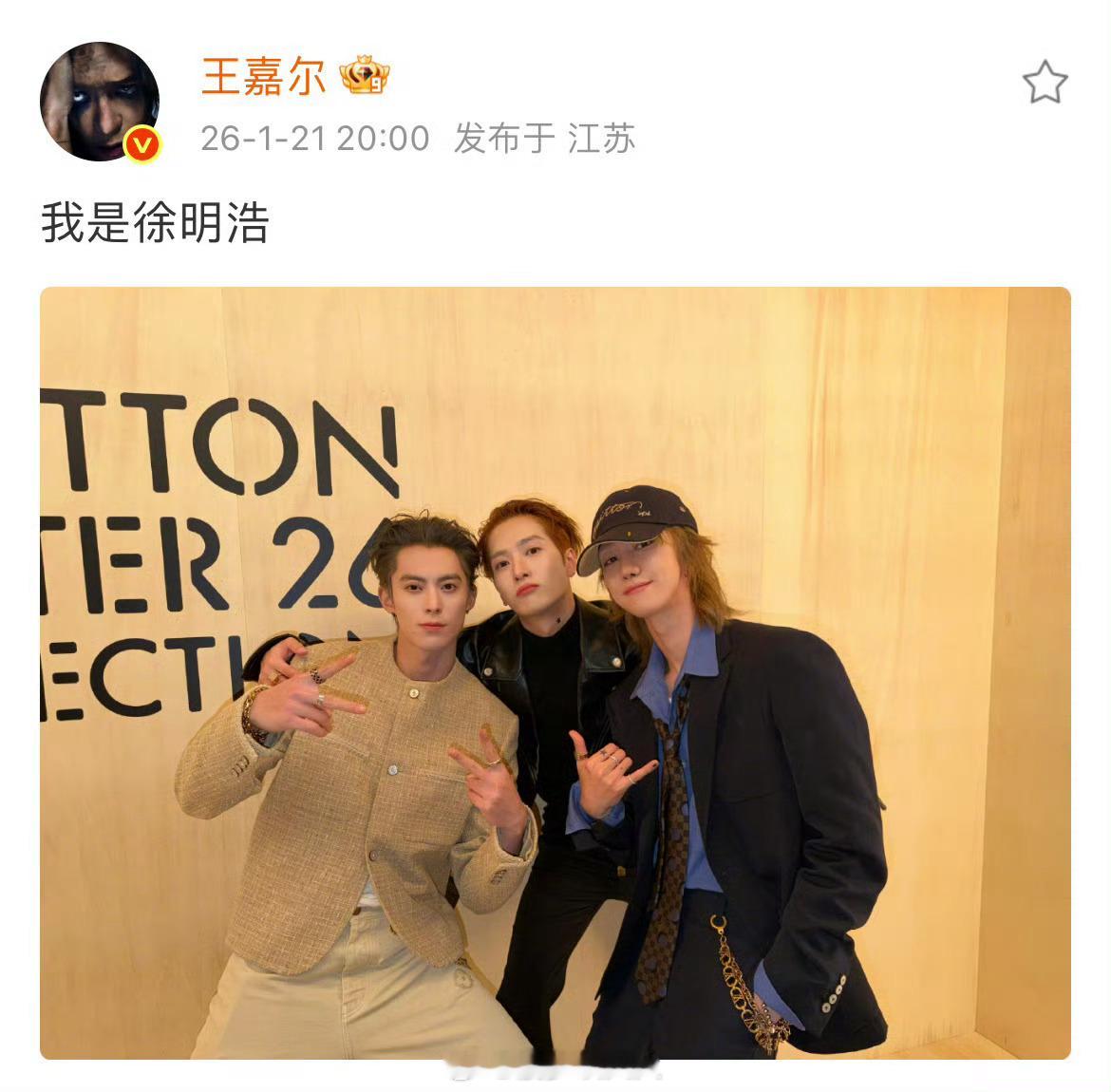 王嘉尔 我是徐明浩三张好权威的帅脸...lv好会请每一张和lv的适配度都很高