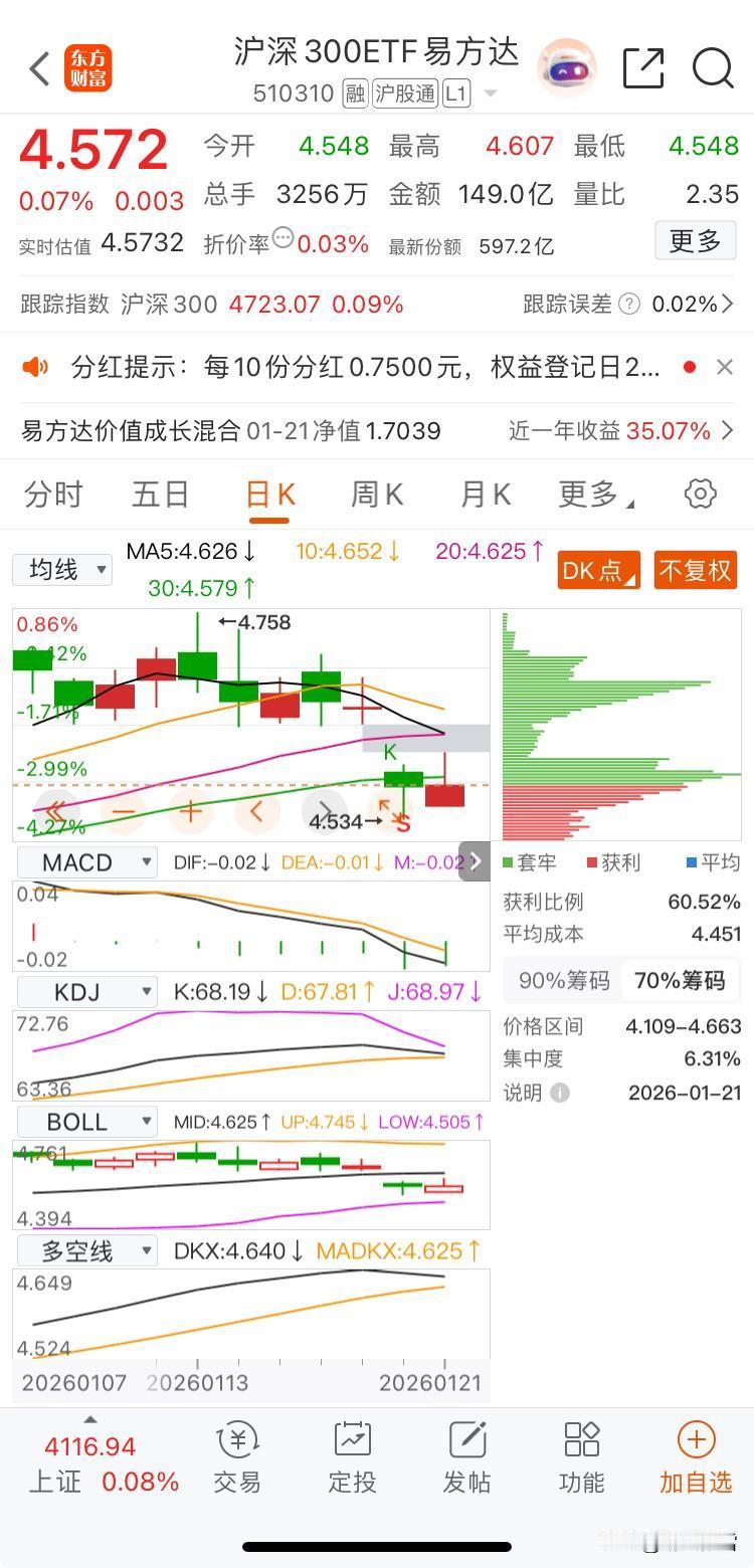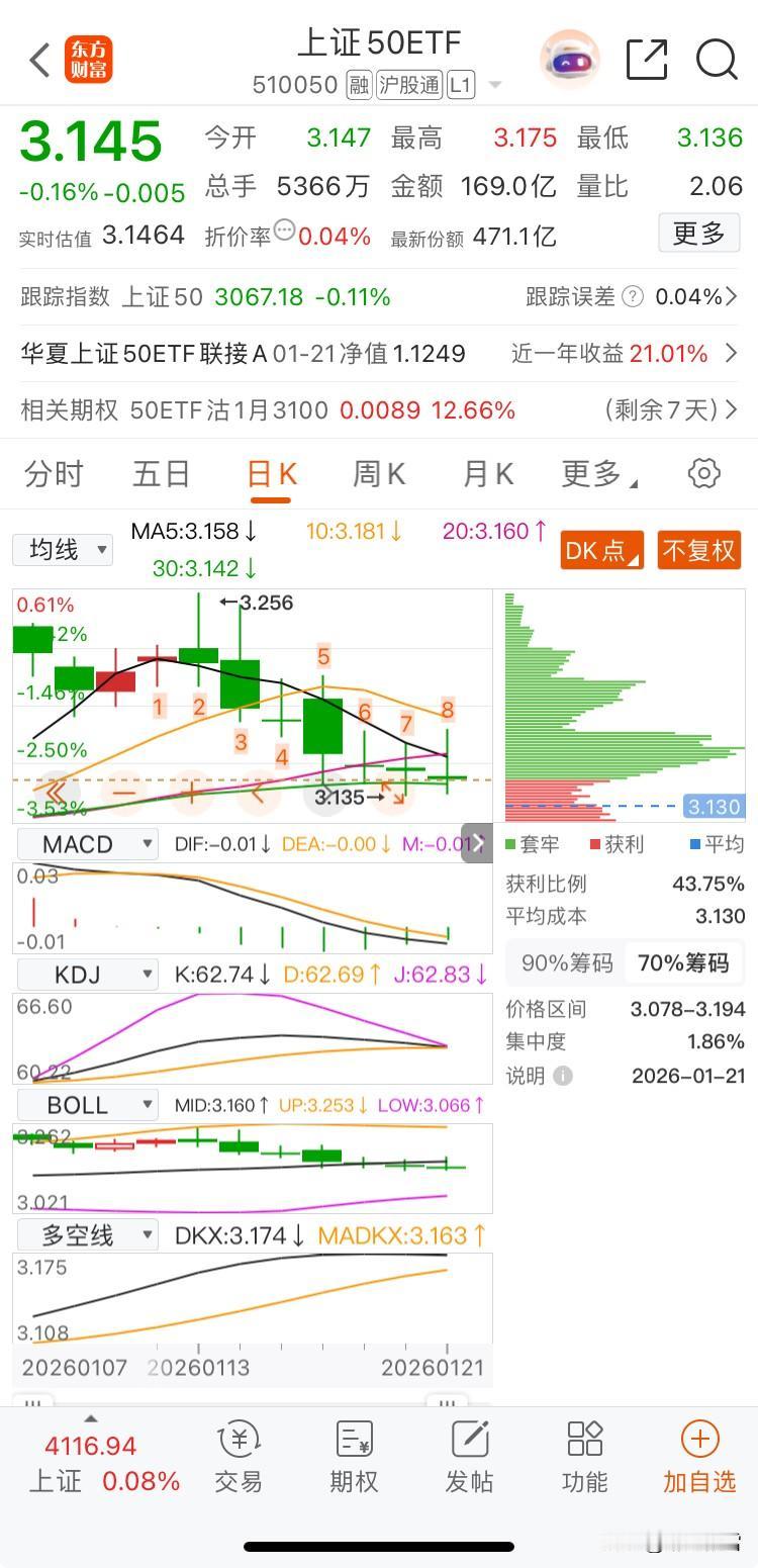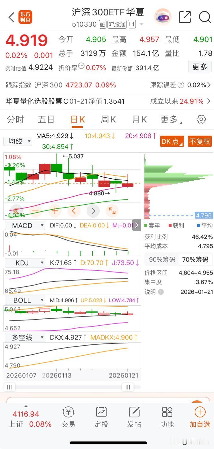 大盘企稳"鸡"先知一一宽基 收盘花几秒钟看一眼即知大盘是否企稳。上证50七连阴且午后赎回放量,沪指没有企稳迹象,目前围绕4100震荡整理期。基金自己的钱让别人玩,股市自己的钱自己玩;根据认知选择。 首先要明白指数仅仅用来控制仓位。 第一、510300 沪深300ETF:价涨量增(>5日均量)+资金净流入 第二、588000 科创50ETF:价涨量增+资金净流入+与510300同步拉升 第三、510500 中证500ETF:价涨量增(辅助验证中小盘成长) 159915 创业板ETF:价涨量增(辅助验证成长主线扩散) 第四、交易策略定调 企稳确认:510300+588000连续2日达标→正常操作,保留适度隔日溢价预期 企稳存疑:缩量涨/资金净流出/二者背离→收紧公式条件,仅跟踪1只标的,练手感而已,无强信号空仓!