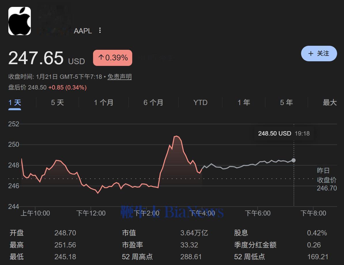 受此影响,苹果股价在周三交易中一度出现直线拉升,最高涨幅达1.6%。