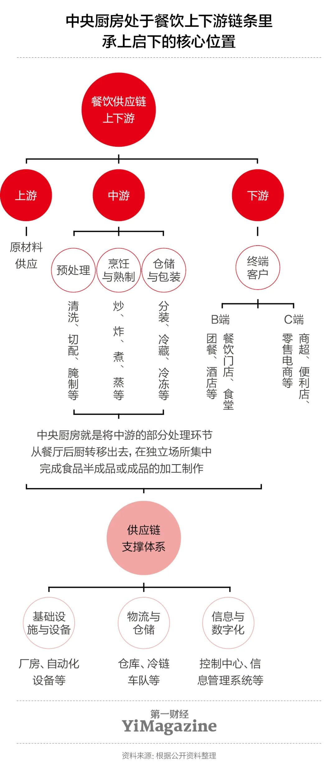 不论如何界定中央厨房,它都是餐饮上下游链条中一个关键的环节,它的运转不仅依靠内部,也需要外部生态的协同。