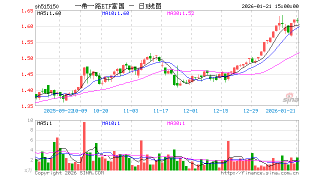1月21日,一带一路ETF富国(515150)跌0.31%,成交额402.37万元。当日份额减少100.00万份,最新份额为5.41亿份,近20个交易日份额减少600.00万份。最新资产净值计算值为8.76亿元。