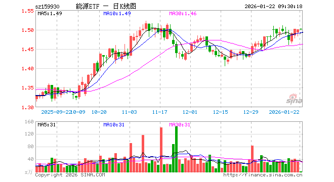 1月22日,能源ETF(159930)开盘涨0.07%,报1.501元。能源ETF(159930)重仓股方面,中国神华开盘涨0.05%,中国石油涨0.80%,陕西煤业涨0.09%,中国石化涨0.34%,中国海油涨0.95%,杰瑞股份涨0.00%,兖矿能源涨0.07%,中煤能源涨0.53%,山西焦煤跌0.15%,潞安环能跌0.16%。
