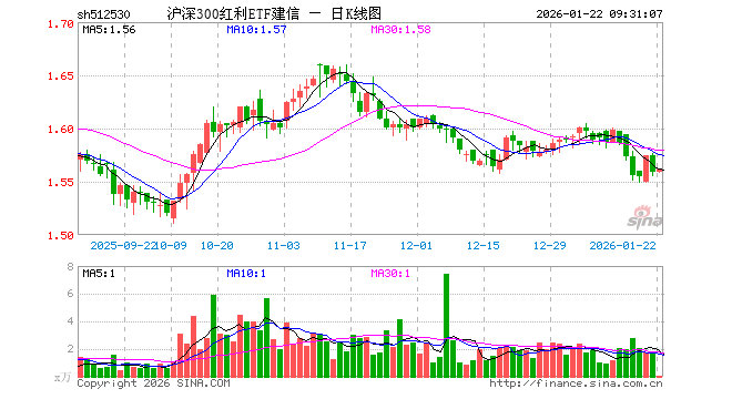 1月22日,沪深300红利ETF(512530)开盘涨0.00%,报1.559元。沪深300红利ETF(512530)重仓股方面,中远海控开盘涨0.07%,山西焦煤跌0.15%,陕西煤业涨0.09%,藏格矿业跌0.01%,兖矿能源涨0.07%,四川路桥涨0.00%,中国神华涨0.05%,上海银行涨0.00%,兴业银行涨0.31%,华夏银行涨0.00%。