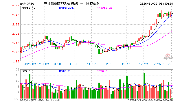 1月22日,中证500ETF华泰柏瑞(512510)开盘涨0.25%,报2.441元。中证500ETF华泰柏瑞(512510)重仓股方面,胜宏科技开盘涨1.31%,华工科技涨0.90%,芯原股份涨0.65%,指南针涨0.06%,先导智能涨0.14%,巨人网络跌0.02%,卧龙电驱涨0.86%,华海清科涨2.14%,欣旺达涨0.25%,通富微电涨3.28%。
