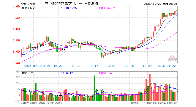 1月22日,中证500ETF易方达(510580)开盘涨0.12%,报4.310元。中证500ETF易方达(510580)重仓股方面,胜宏科技开盘涨1.31%,华工科技涨0.90%,先导智能涨0.14%,芯原股份涨0.65%,指南针涨0.06%,巨人网络跌0.02%,卧龙电驱涨0.86%,欣旺达涨0.25%,赤峰黄金跌4.01%,通富微电涨3.28%。