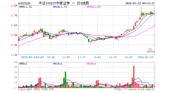 中证500ETF中银证券(515190)业绩比较基准为中证500指数收益率,管理人为中银国际证券股份有限公司,基金经理为张艺敏、刘先政,成立(2020-04-30)以来回报为73.49%,近一个月回报为16.16%。