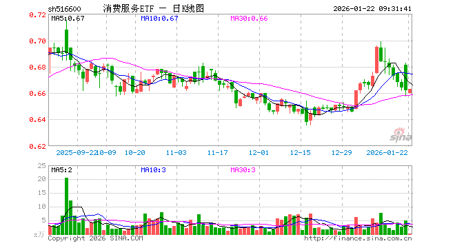 1月22日,消费服务ETF(516600)开盘跌0.30%,报0.660元。消费服务ETF(516600)重仓股方面,恒瑞医药开盘涨0.43%,药明康德涨0.46%,寒武纪跌0.73%,贵州茅台涨0.07%,五粮液涨0.02%,中国平安涨0.43%,科大讯飞涨0.88%,招商银行涨0.08%,伊利股份涨0.00%,中国电信涨0.17%。