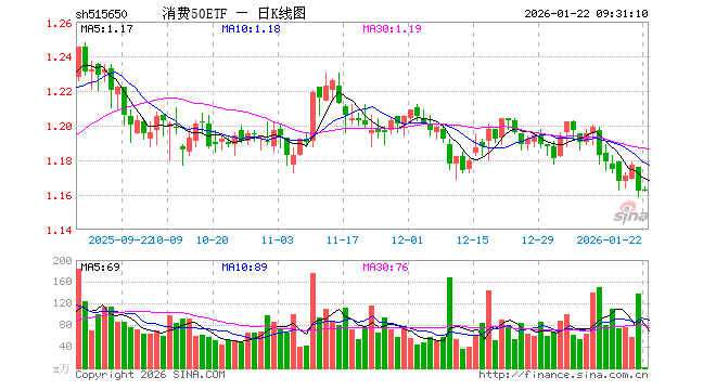 消费50ETF(515650)业绩比较基准为中证消费50指数收益率,管理人为富国基金管理有限公司,基金经理为王乐乐,成立(2019-10-14)以来回报为16.07%,近一个月回报为-3.28%。